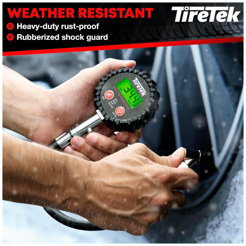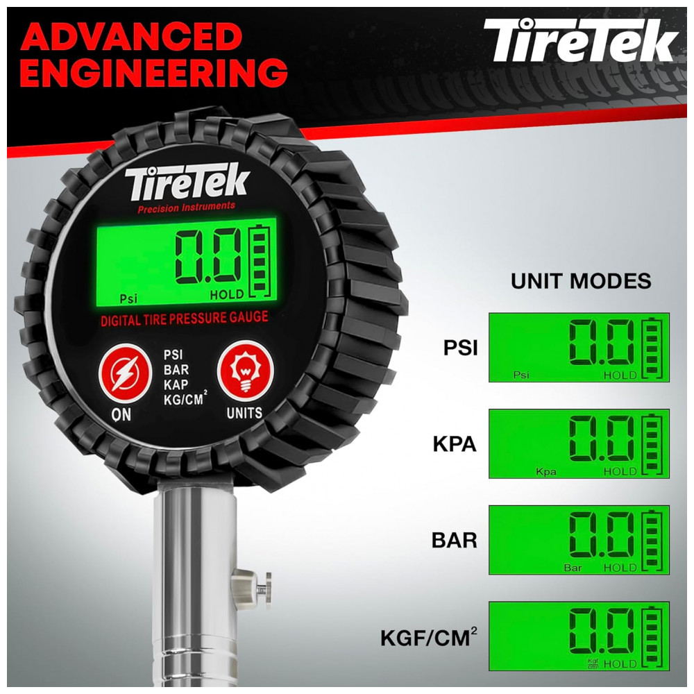Medidor Digital de Pressão de Pneus 200 PSI Resistente Medidor de Pressão de Pneus em Aço Inoxidável Certificado ANSI Medição FácilTIRETEK