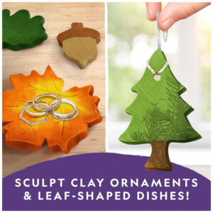 As crianças podem fazer 4 peças de cerâmica temáticas da natureza com os materiais deste kit! Elas irão criar 3 enfeites e 1 prato para anéis, com tintas e pincel incluídos para personalizar sua arte! Elas podem exibi-los com orgulho ou presentear alguém especial! A Blue Marble, vencedora do prestigioso prêmio Brinquedo do Ano da Toy Association, desenvolve orgulhosamente produtos que promovem educação, imaginação e criatividade, com uma equipe de suporte nos EUA para garantir uma experiência excepcional!