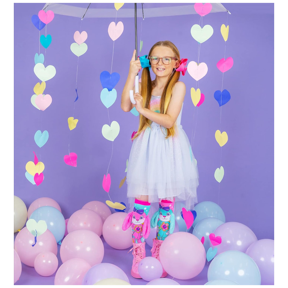 SEJA MEU HUNNY BUNNY Pule de alegria com essas adoráveis Meias Hunny Bunny da MADMIA, com orelhas fofas anexadas! Um par dessas meias de coelho oferece energia duradoura, um visual fofo e pés estilosos. QUALIDADE SUPERIOR Feitas de uma mistura perfeita de 70% Nylon, 28% Poliéster e 2% Spandex, essas vibrantes e coloridas meias até o joelho oferecem um ajuste super confortável com boa elasticidade, para que não escorreguem pela perna nem distorçam o design ao serem usadas. MADMIA WONDERLAND Marca australiana, as mundialmente famosas meias da MADMIA são extremamente populares entre crianças de todo o mundo! Junte-se ao squad MADMIA hoje e confira todos os incríveis designs de meias da MADMIA. PERFEITAS PARA TODAS AS OCASIÕES Meias presentes perfeitos para aniversários, Natal, Páscoa, Halloween, dias de meias malucas, meias divertidas, meias de dança, festas infantis, meias de compressão para viagem de avião, quentes, confortáveis e respiráveis, adequadas para todas as estações! TAMANHO IDEAL Nossas meias no tamanho Toddler são ideais para idades de 3 a 5 anos. Para crianças a partir de 6 anos, escolha o tamanho Kids/Adults.