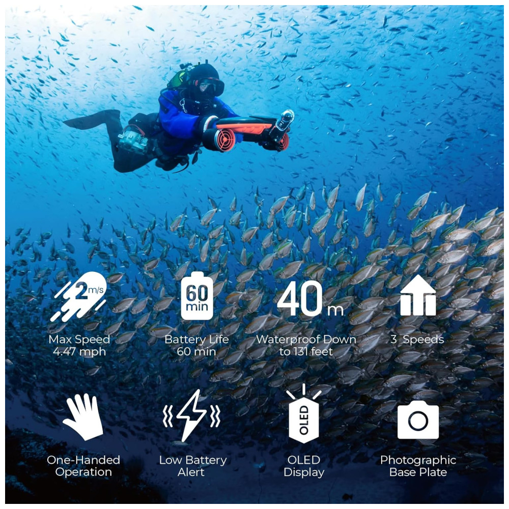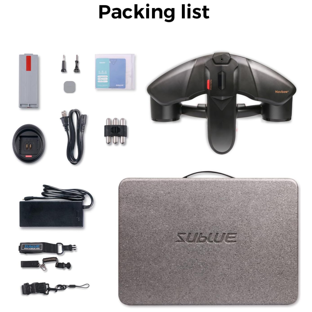 O Navbow Plus da Sublue é o mais rápido scooter subaquático da nossa linha, oferecendo 3 modos de velocidade: FREE 1ms, SPORT 1.5ms e TURBO 2ms. Equipado com motores duplos de 15 kgf, proporcionando potência suficiente para puxar várias pessoas. Com autonomia de até 60 minutos de uso intermitente ou 45 minutos contínuos no Modo Free. Design com bateria removível para fácil substituição, carregamento completo em 3,5 horas. Possui flutuabilidade positiva, OLED Display, alarme de bateria baixa e operação com uma mão. Resistente até 40 metros de profundidade, com montagem universal para câmeras de ação e sistema de autolimpeza para evitar corrosão.