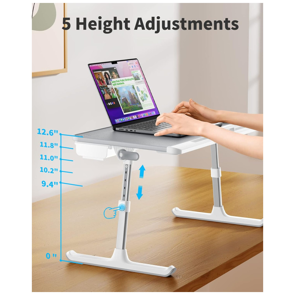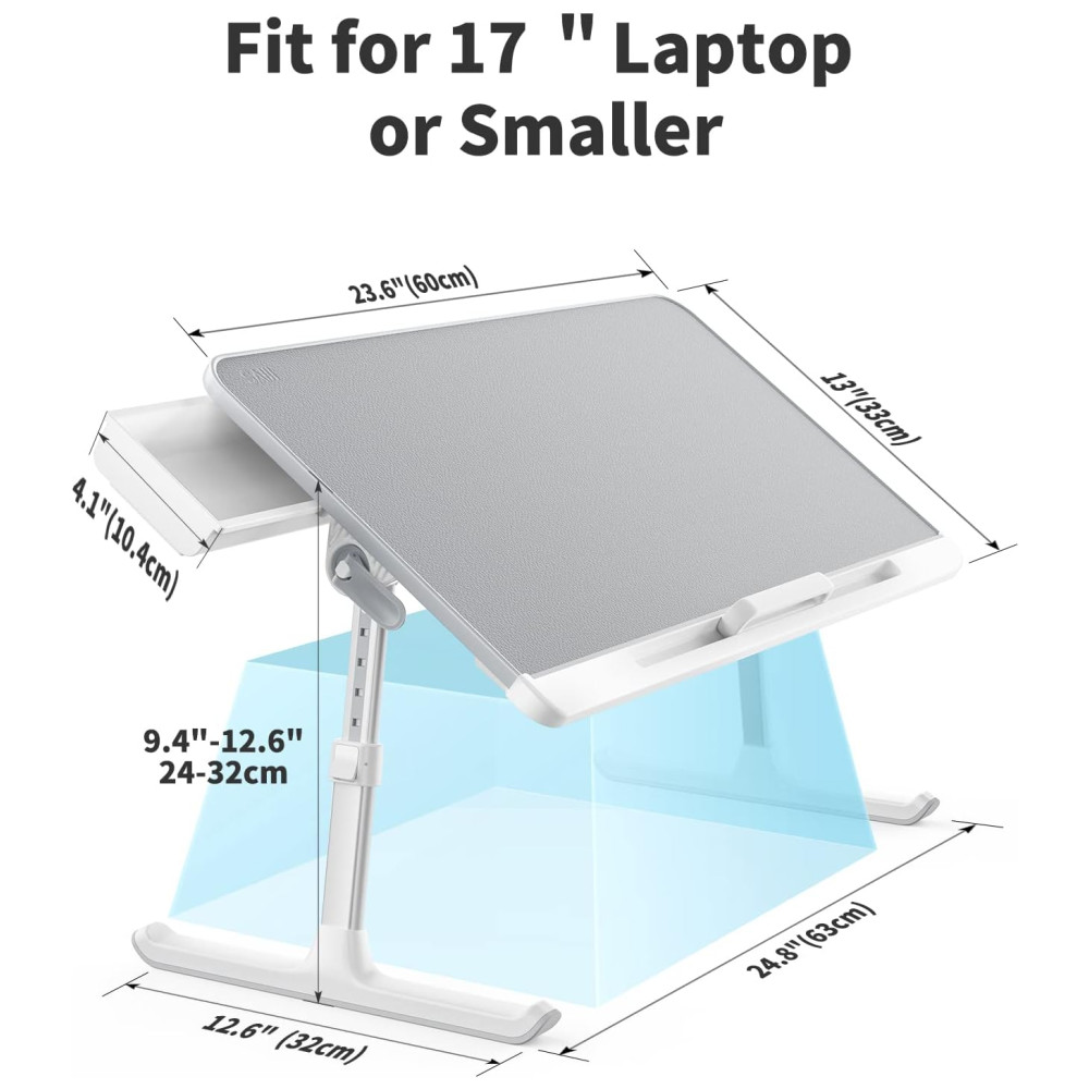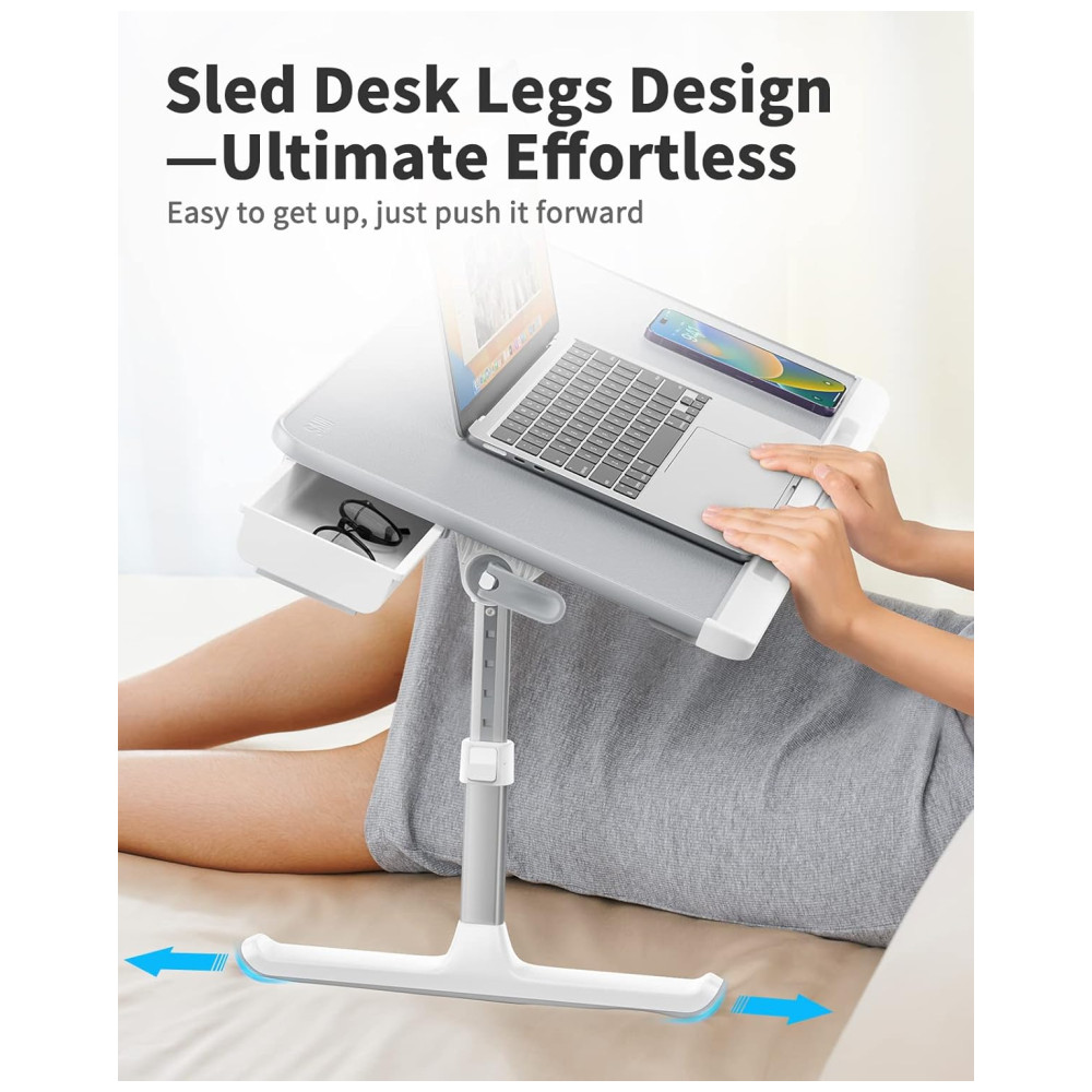 Mesa cama para laptop ajustável portátil de pé com gaveta de zenamento dobrável para tablet cinza SAIJI K7M G Branco