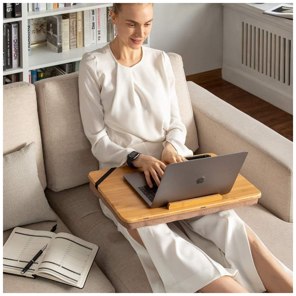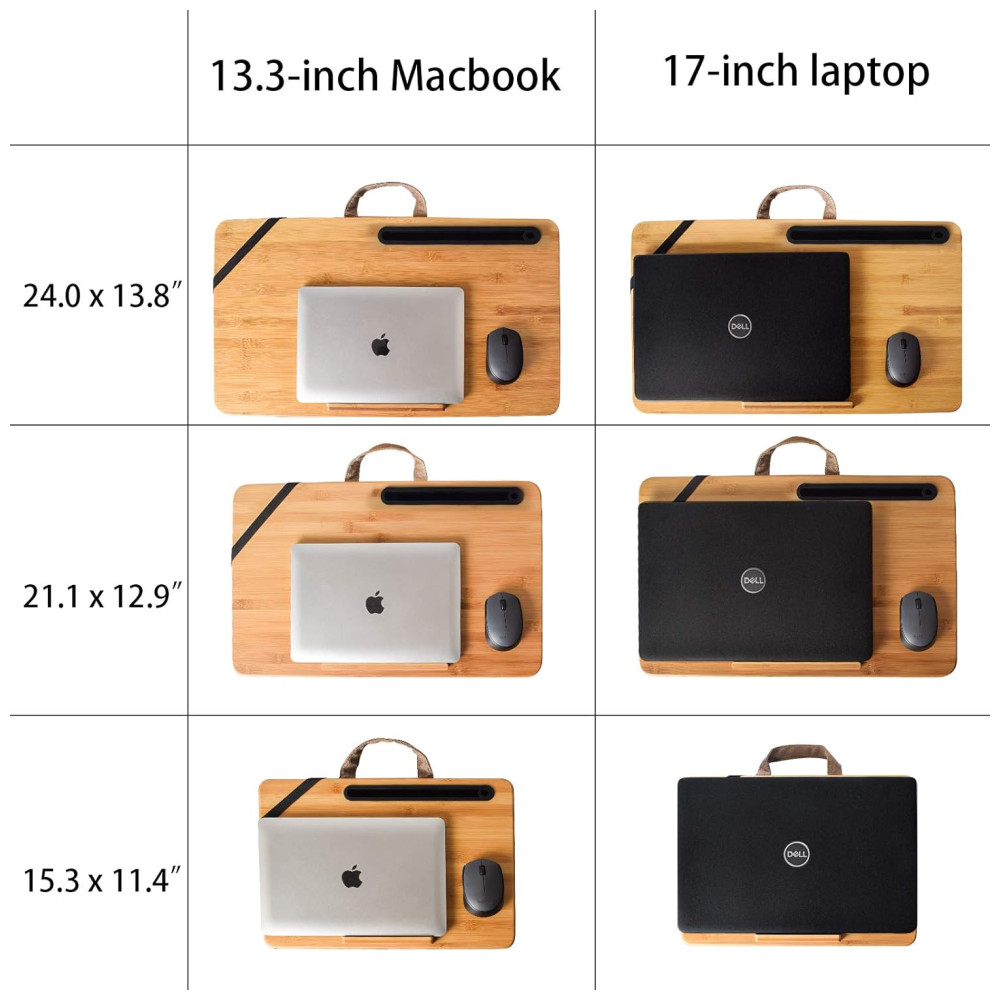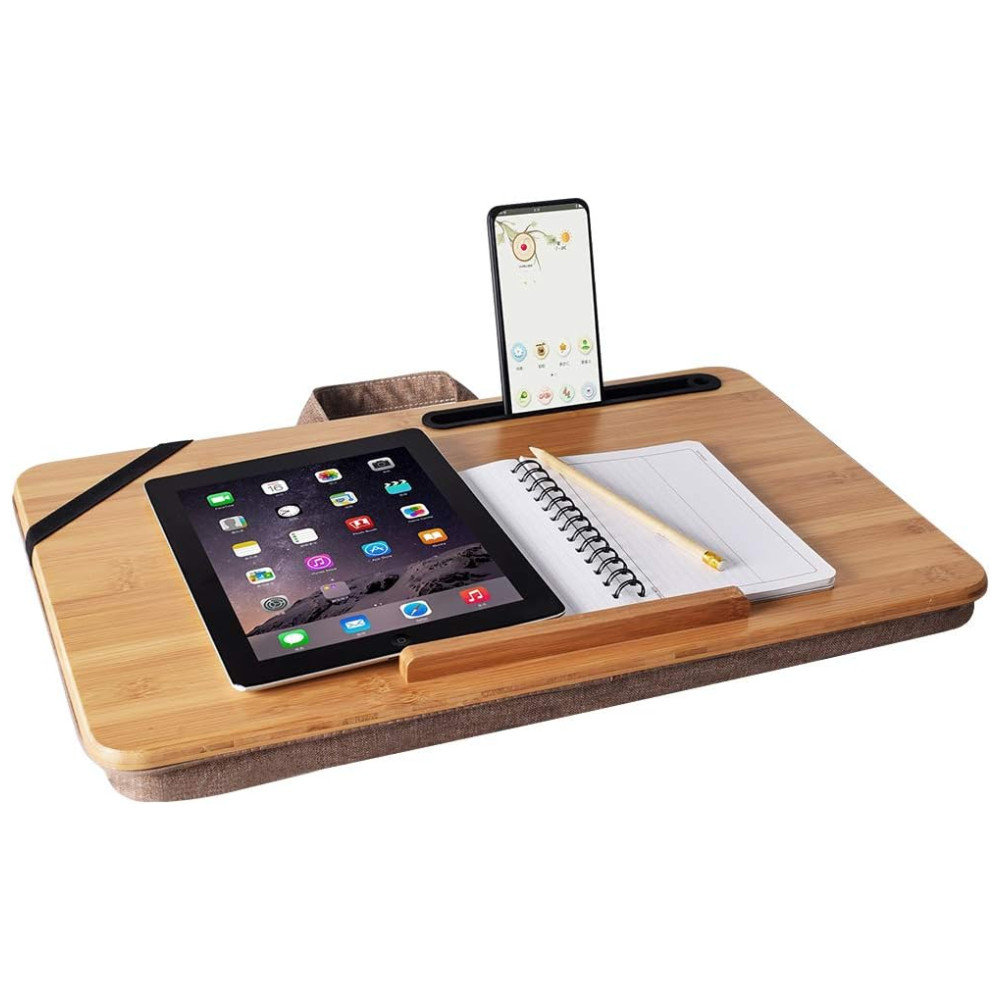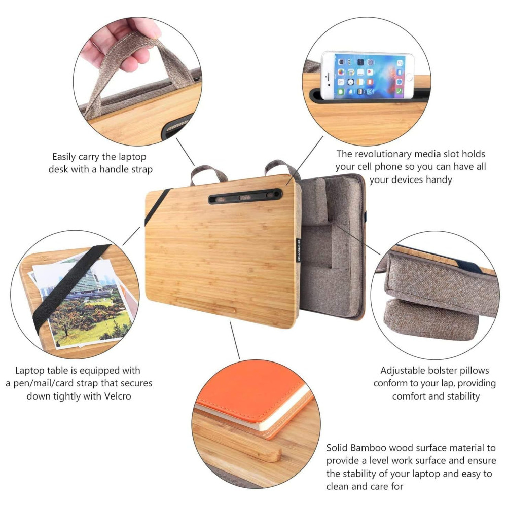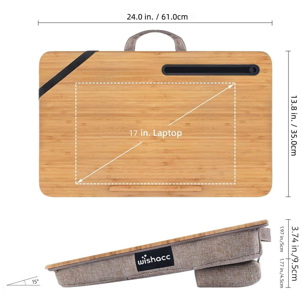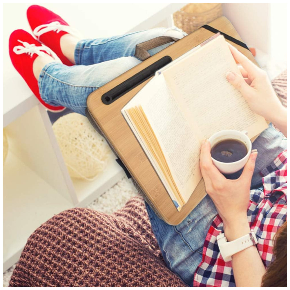 Esta bandeja de mesa colo grande é construída com bambu e almofada de alta qualidade, vem com slots para telefone, caneta e tablet, para que você possa verificar se há mensagens , chamadas recebidas a qualquer momento enquanto usa esta mesa de laptop para trabalho ou leitura, e é quase o maior mesa de colo do .