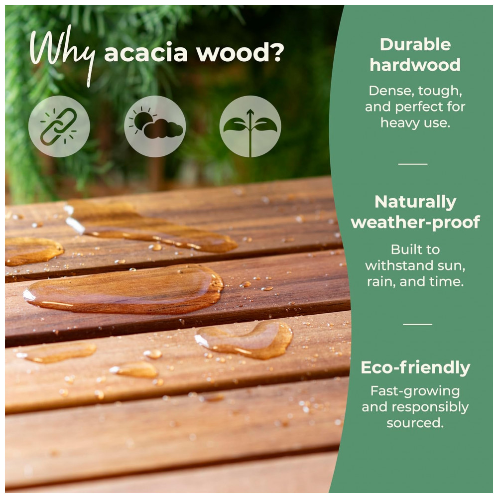 Material da estrutura: Madeira acácia com acabamento para uso externo