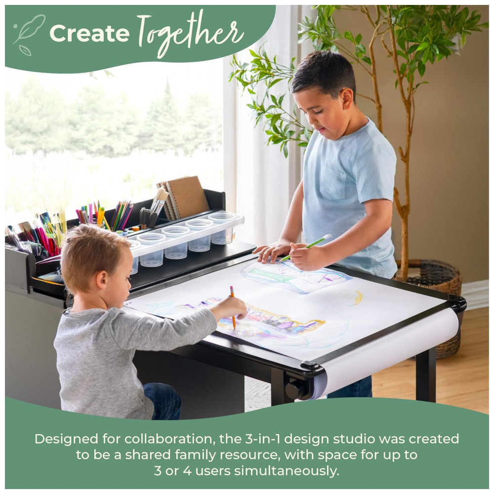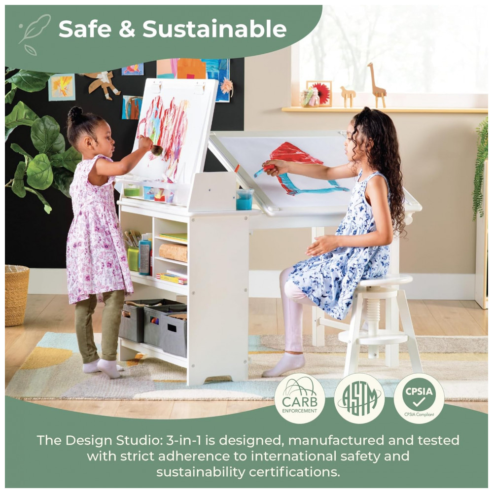A Guidecraft desenvolve móveis e estações de arte infantis com foco em durabilidade, segurança e apoio ao desenvolvimento criativo. A linha Design Studio foi pensada para oferecer um espaço completo de criação em casa ou em ambientes educativos, com armazenamento integrado e funções que estimulam autonomia, coordenação motora fina e interesse por desenho e pintura.