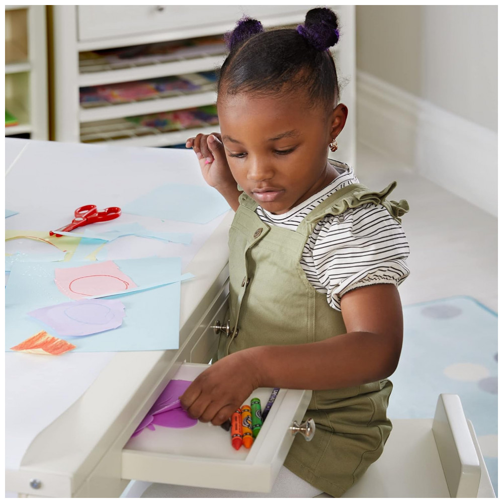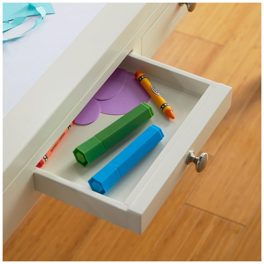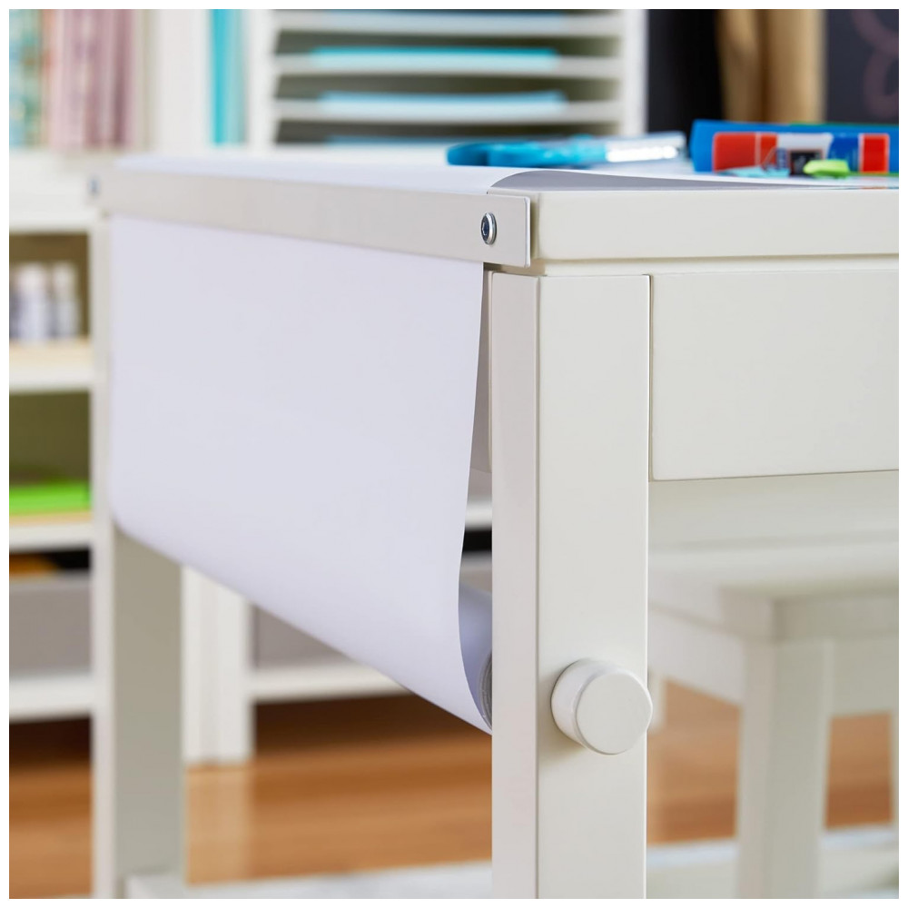 Mesa de artes infantil Martha Stewart Crafting Linen White com rolo de papel e 3 gavetas de armazenamento