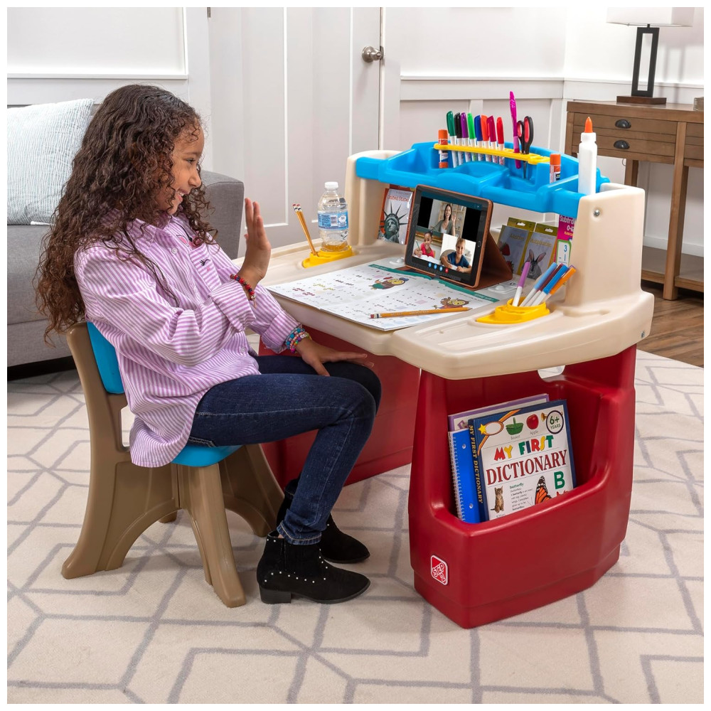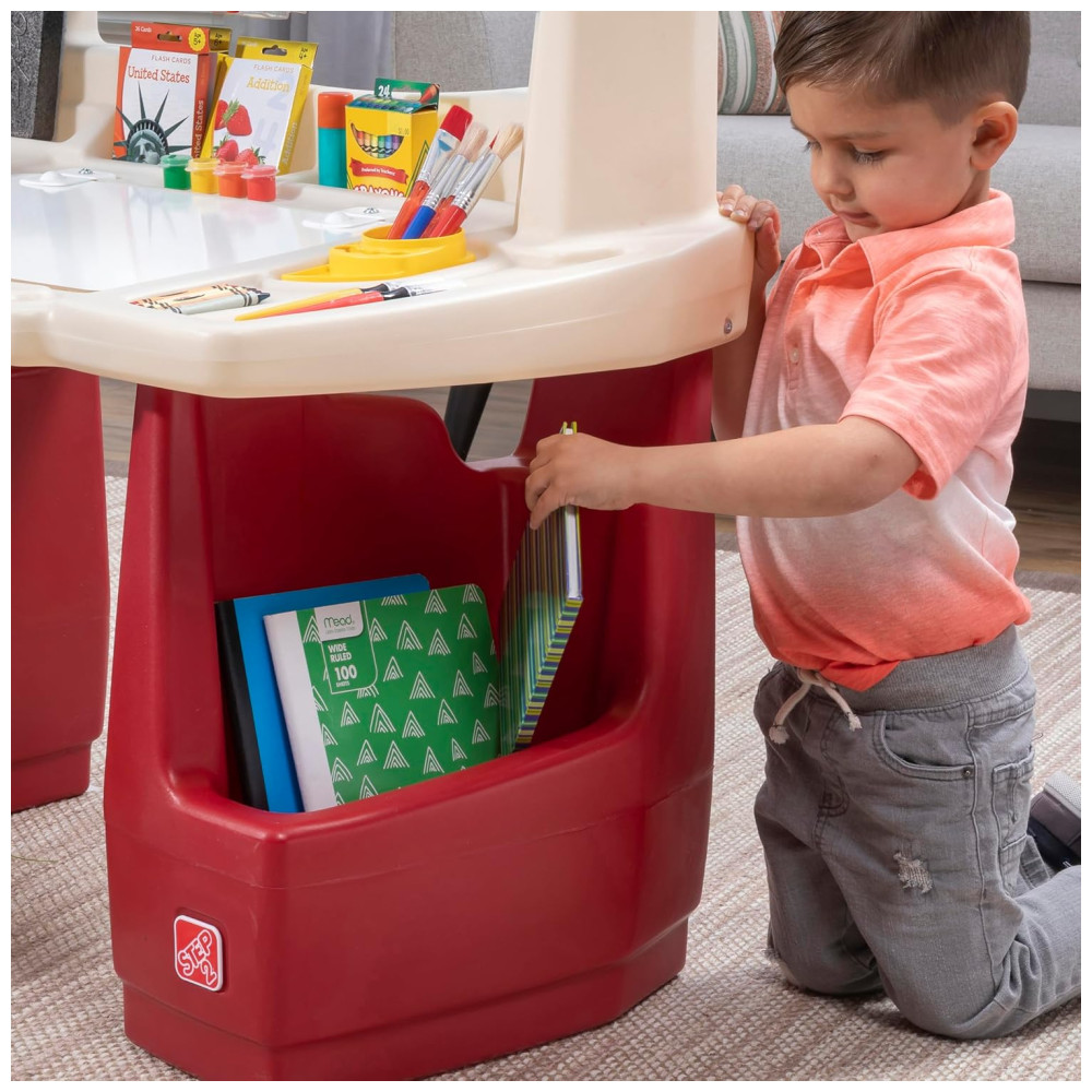 Mesa de Atividades Infantil com Cadeira e Espaço para Armazenamento Ideal para Crianças a Partir de 3 Anos Step2 Vermelha e Bege