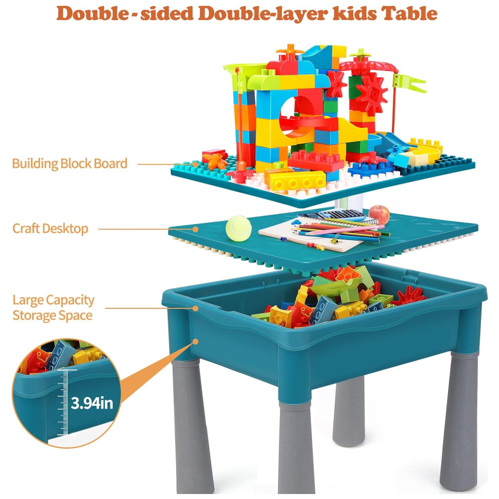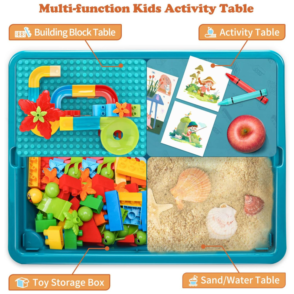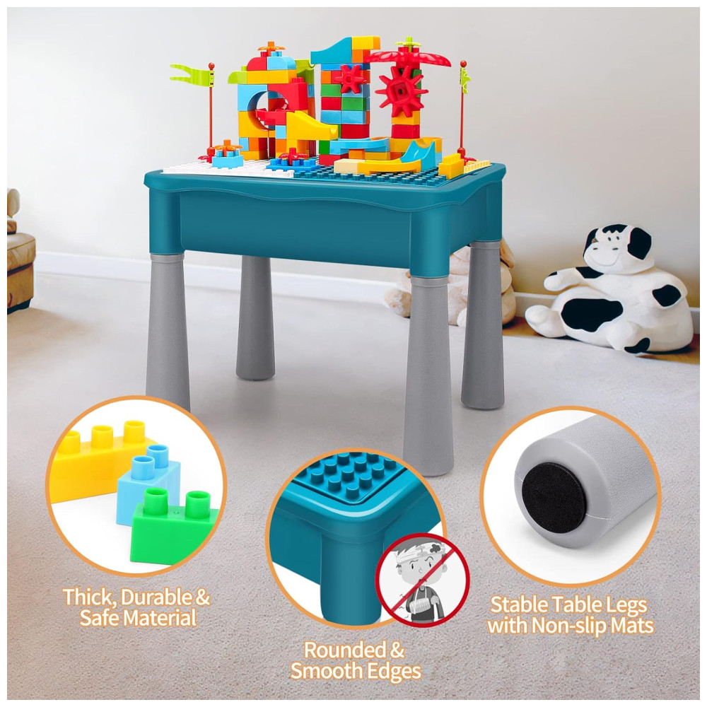 Mesa de Atividades Multifuncional 5 em 1 com 105 Blocos de Montar e Armazenamento BEAURE Azul
