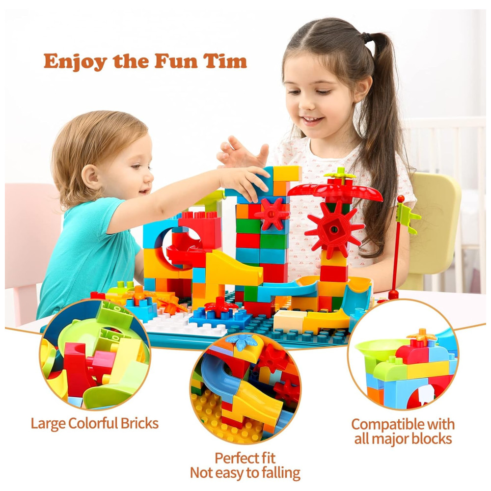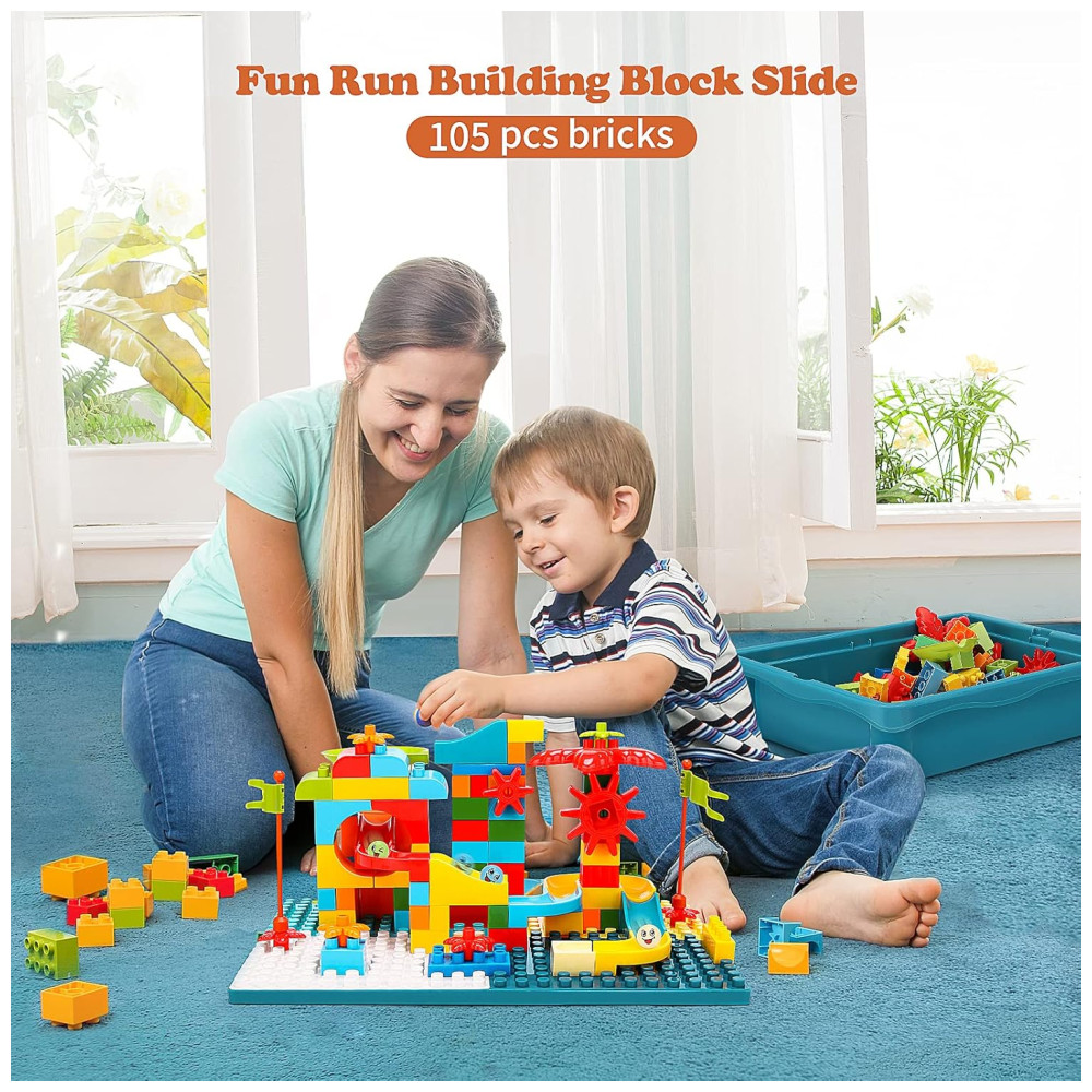 Jogo Divertido de Blocos Deslizantes: Com este conjunto de 105 peças de grandes tijolos coloridos, as crianças podem construir emocionantes pistas de corrida de blocos de construção de mármore. Este jogo inspira a imaginação e a criatividade, enquanto os tijolos são projetados com precisão para serem fáceis de manusear pelas mãos das crianças e seguros contra ingestão acidental. Além disso, são compatíveis com todas as principais marcas de blocos.