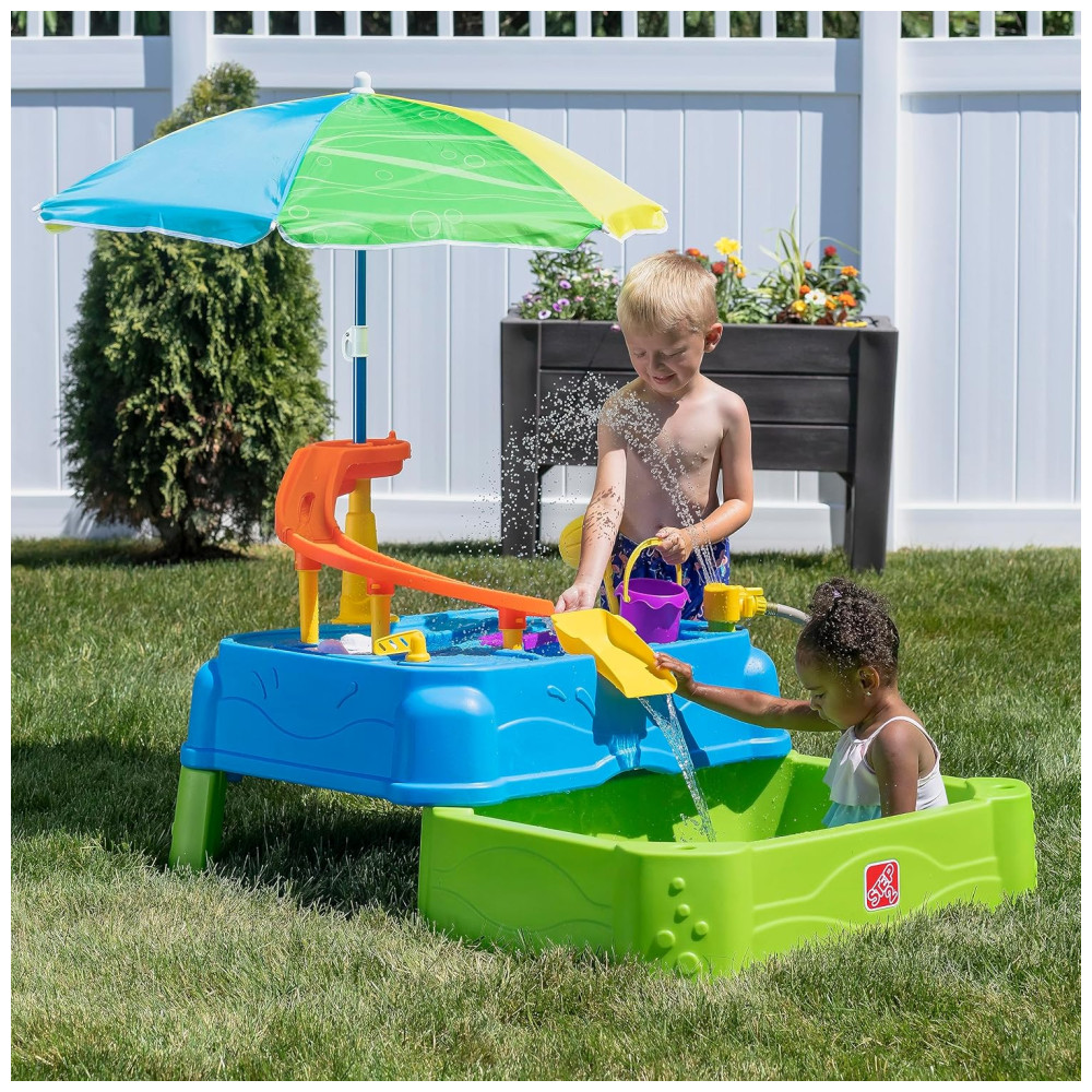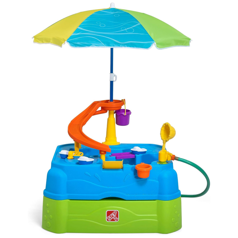 Mesa de Atividades Sensoriais com Água 2 Níveis Guarda Chuva e Acessórios Step2 Azul