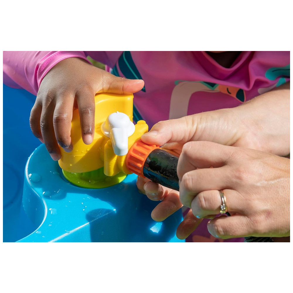 Com um design de duas camadas, a mesa superior comporta até 15,16 litros de água, enquanto a mesa inferior pode acomodar impressionantes 60,64 litros Conecte uma mangueira de jardim padrão ao aspersor embutido para criar uma chuva de diversão aquática. O maravilhoso efeito de chuva irá refrescar o jogo, provocando risos e alegria por toda parte.