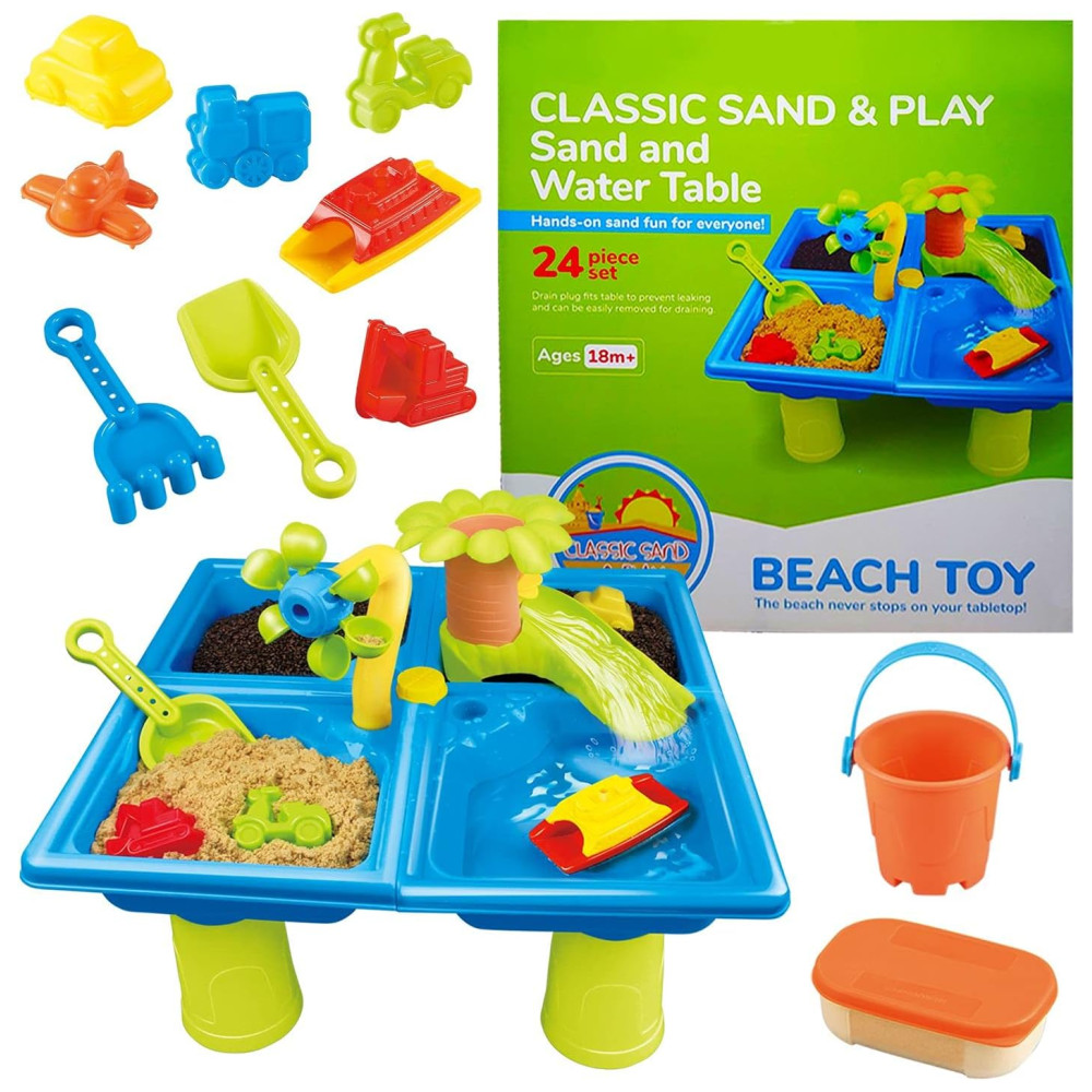 Mesa de Atividades Sensoriais para Areia Água e Outros com 24 Peças CLASSIC SAND Azul