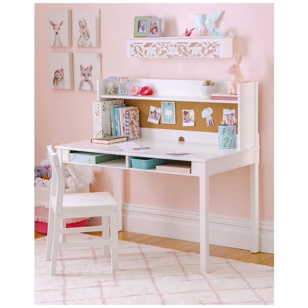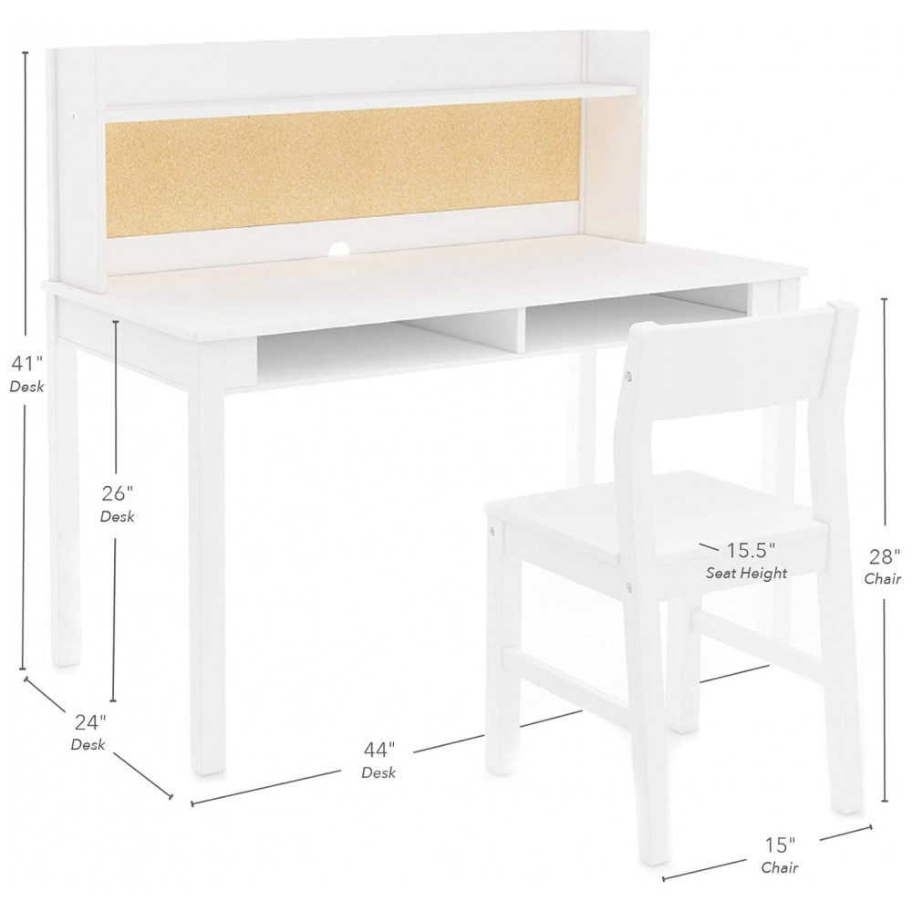 Mesa de Estudo Infantil Martha Stewart Guidecraft Branco Creme com Armário Superiores Cadeirinha Armazenamento Tampa de Cortiça 112x61x104cm