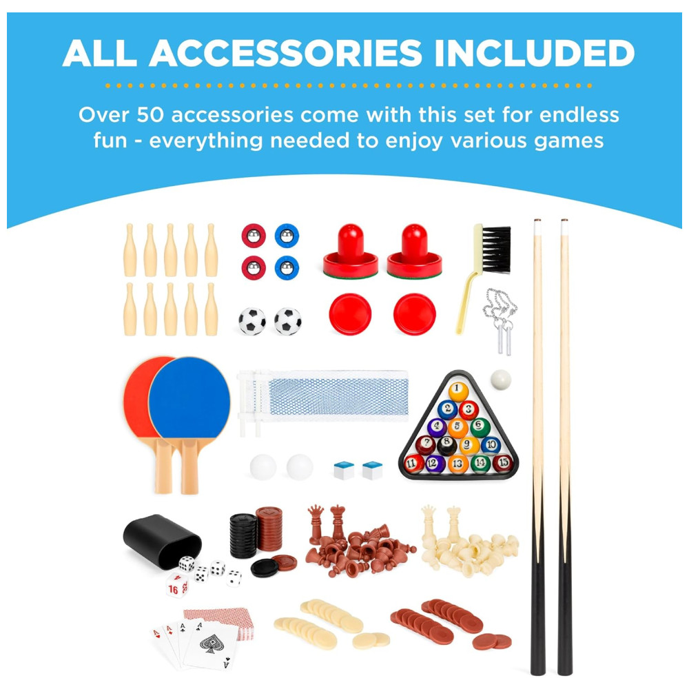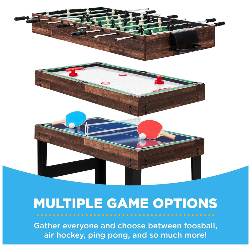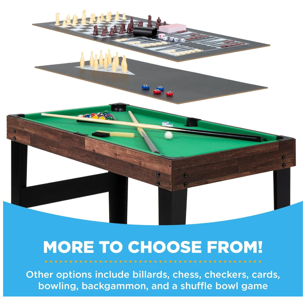Mesa de Jogos 10 em 1 para Diversão em Casa com Pebolim Sinuca Shuffleboard Pingue-Pongue Xadrez Damas Boliche e Gamão Best Choice Products Marrom Escuro