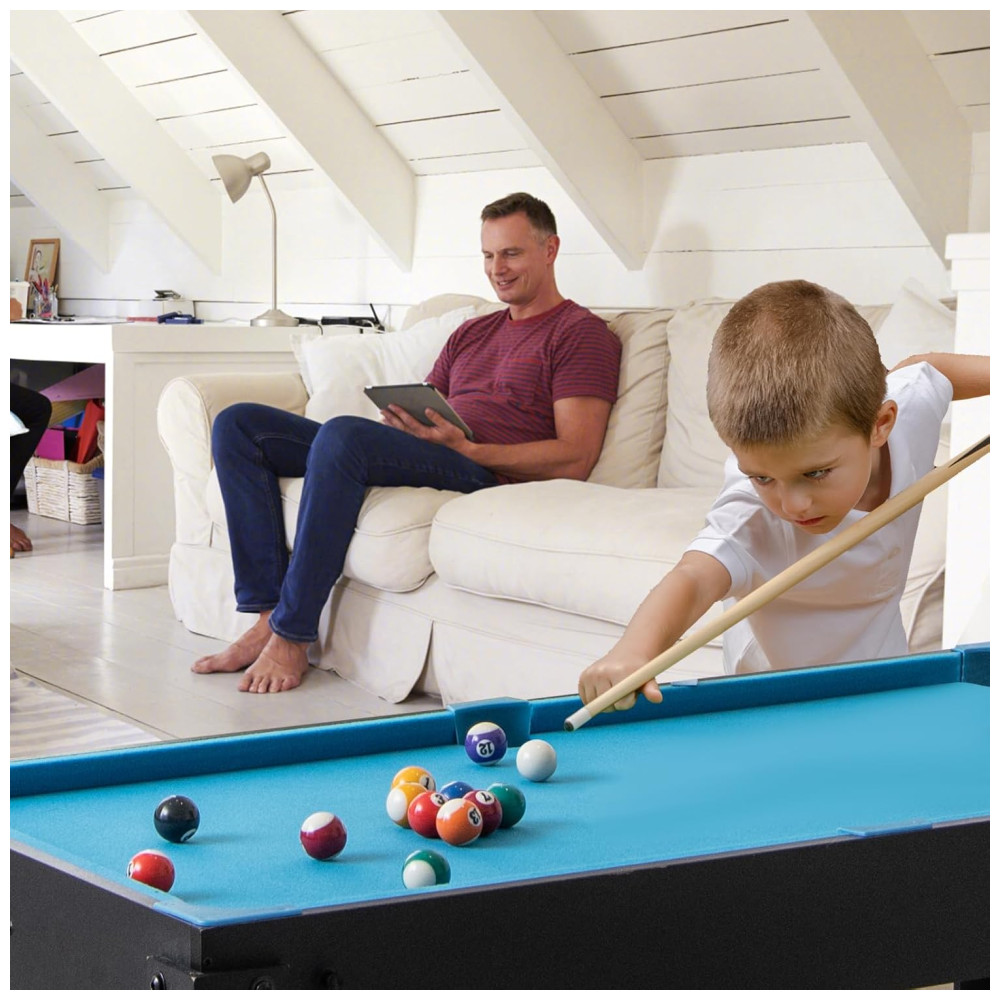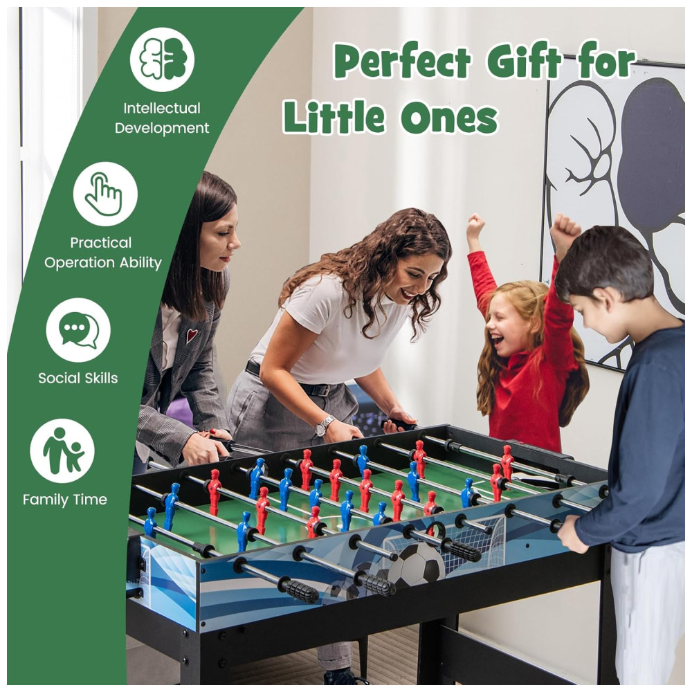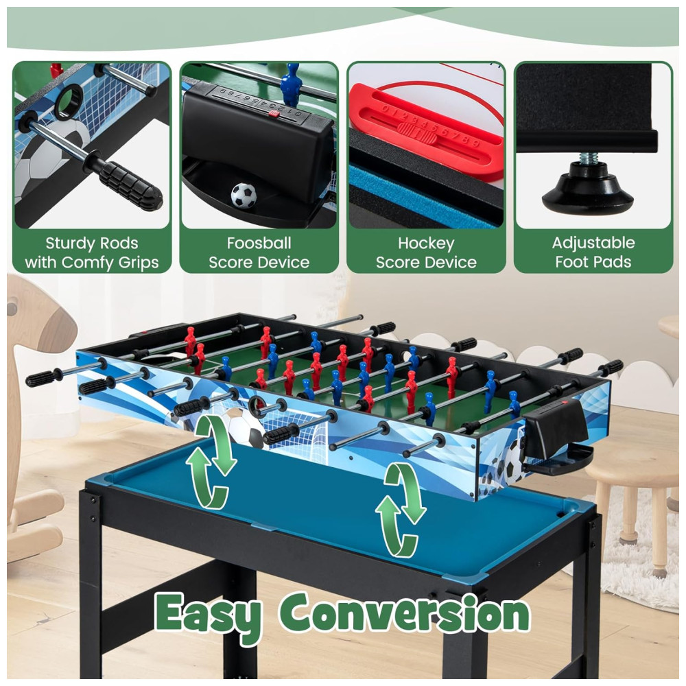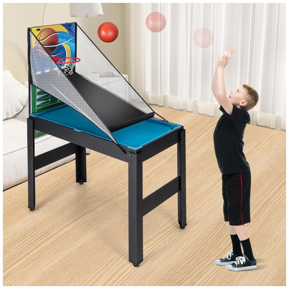 Mesa de Jogos 14 em 1 para Diversão em Casa com Pebolim Hóquei Basquete Pingue-Pongue Sinuca Xadrez Boliche Damas e Shuffleboard Giantex Preta e Azul
