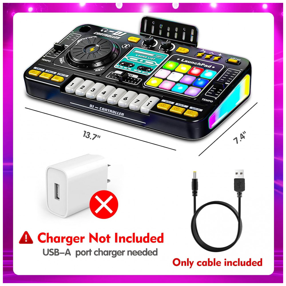 Itens inclusos: Mesa DJ musical infantil, microfone e cabo USB