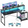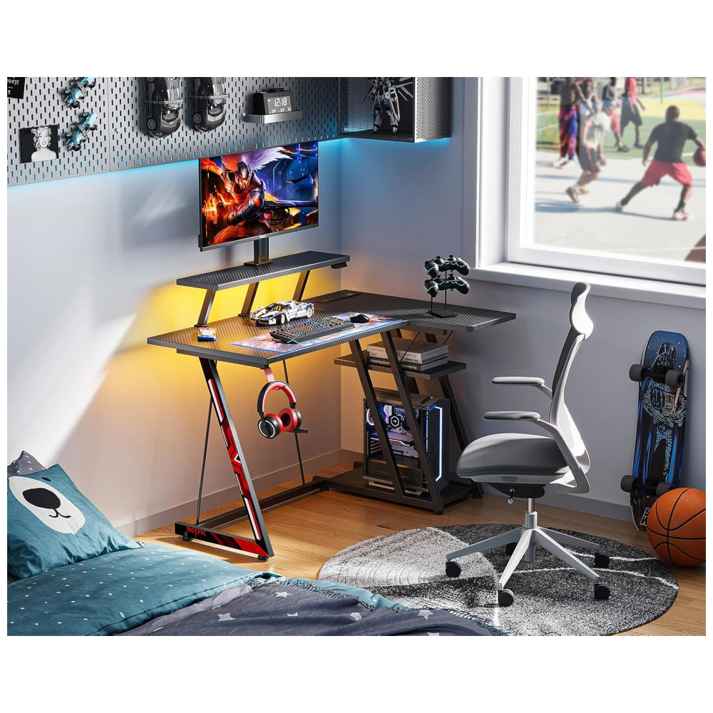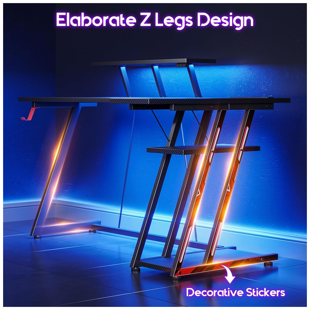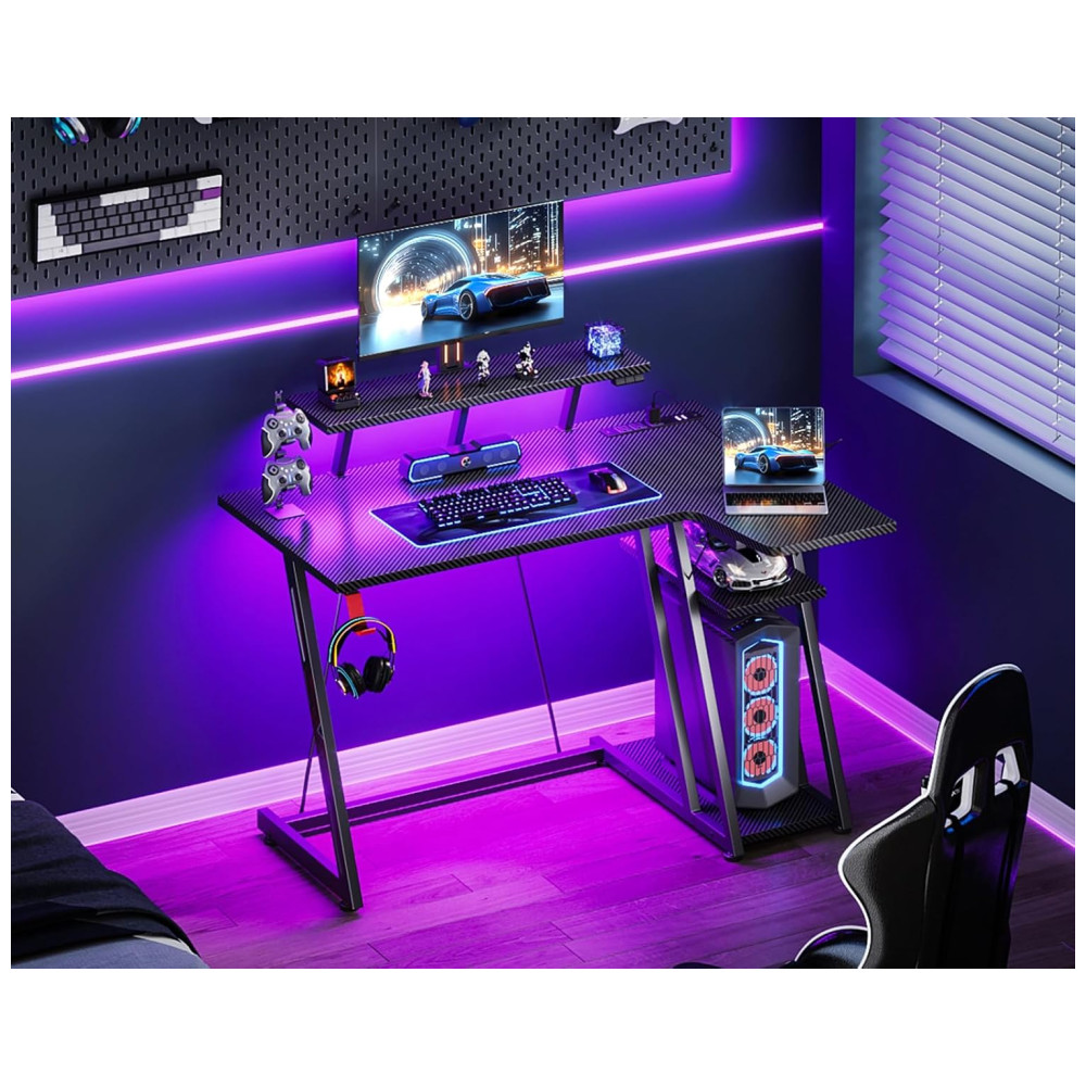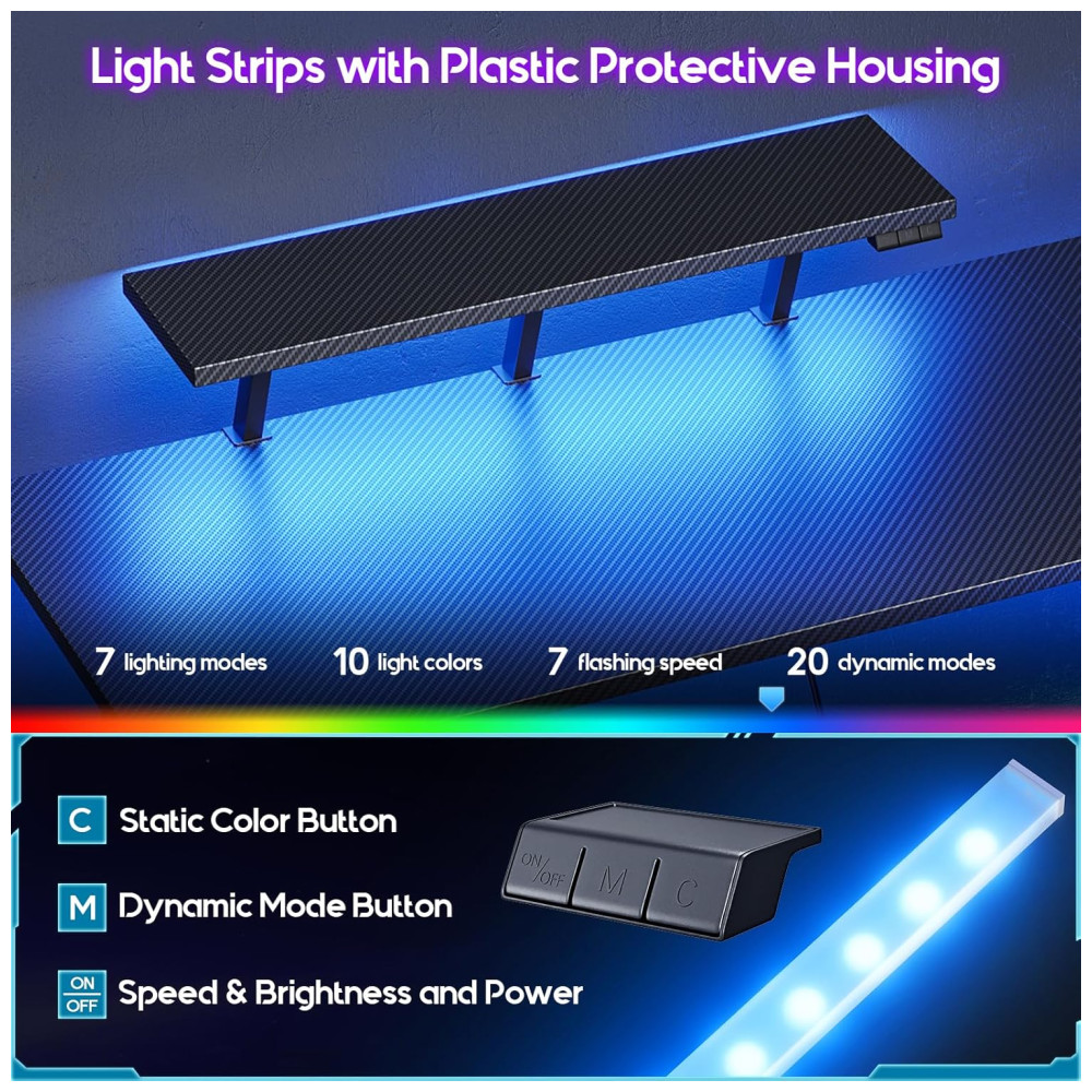 Mesa Gamer de Fibra de Carbono 39″ 100 cm com Gancho para Fone de Ouvido 2 Tomadas 2 Portas USB Luz LED e Suporte para Monitor 110V MOTPK Preto