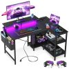 Mesa Gamer de Fibra de Carbono 42″ 106 cm com Gancho para Fone de Ouvido Luz LED Porta-Copos Tomadas Mesa de Canto Reversível e Prateleiras 110V Bestier Preto