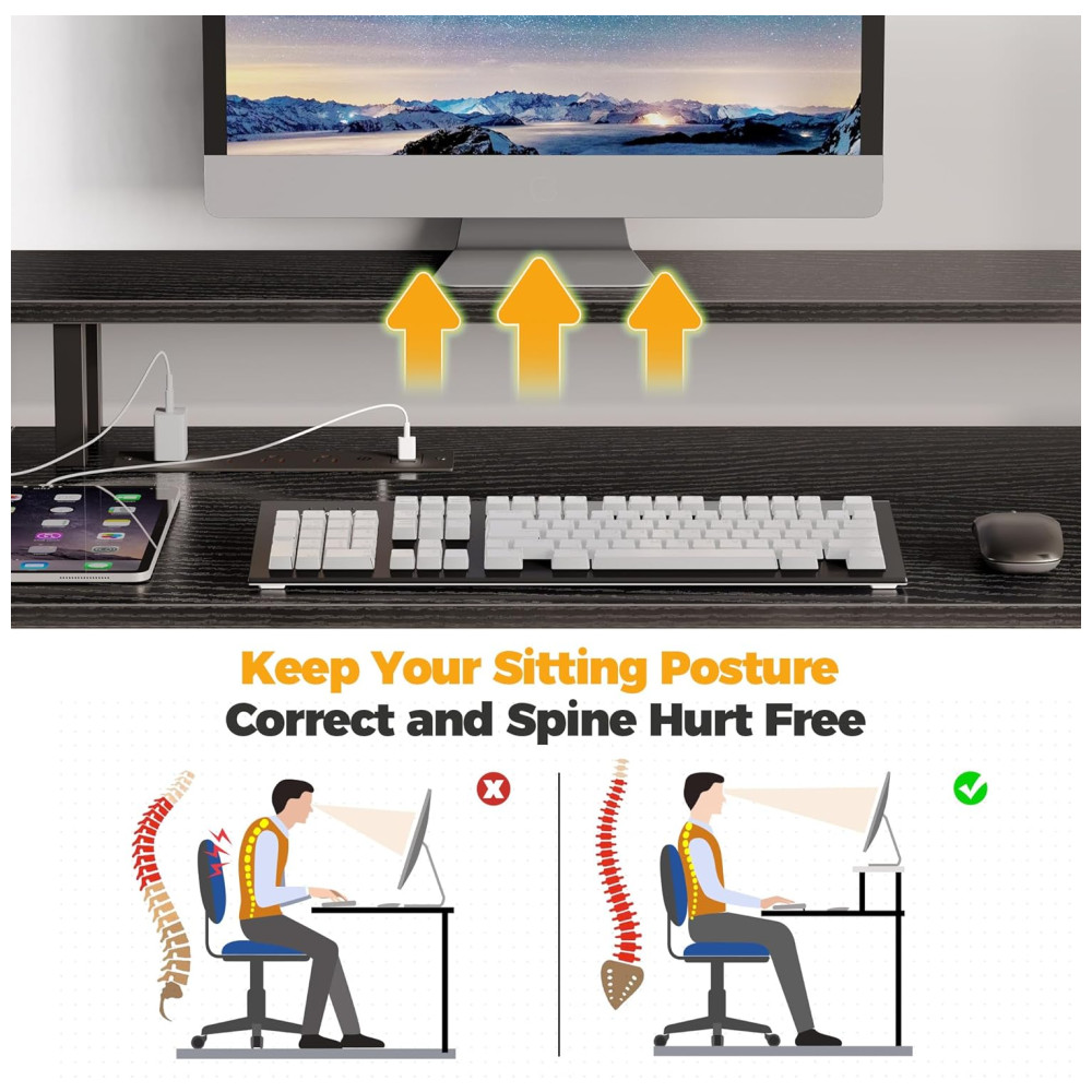 O suporte para monitor removível adiciona mais espaço útil à mesa, melhorando sua funcionalidade geral. Com dimensões de 56,7 cm de profundidade x 46,5 cm de largura x 46,99 cm de altura x 74,93 cm de comprimento, esta mesa é ideal para quartos, salas de estudo e escritórios, oferecendo uma solução prática e elegante para suas necessidades.