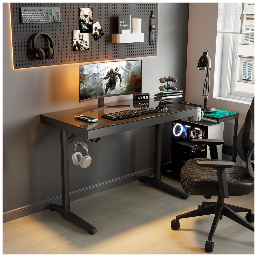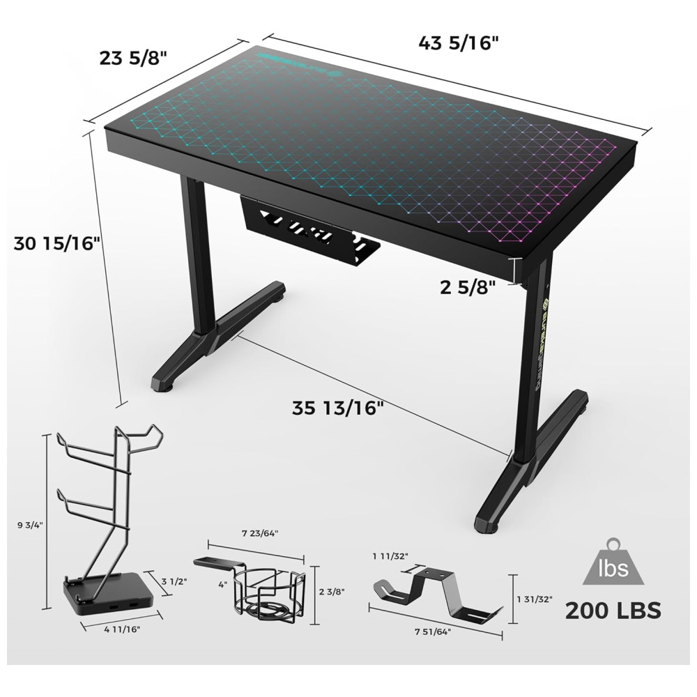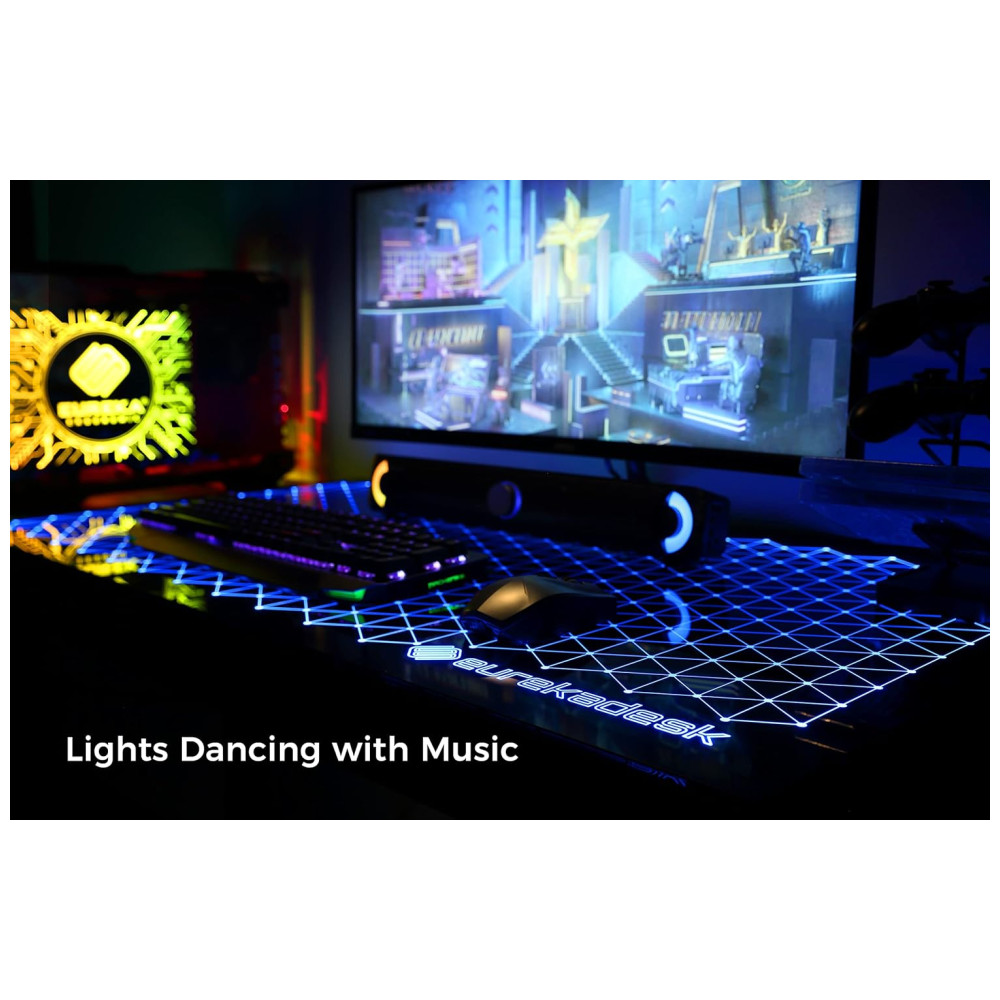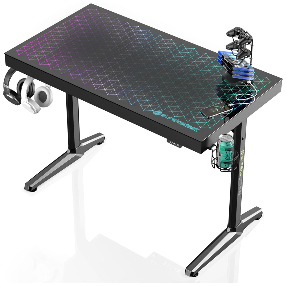 A mesa de jogo GTG I43 da Eureka Ergonomic apresenta um design inovador com efeitos de iluminação LED RGB Music Sync patenteados. A mesa, com tampo de vidro temperado de 4,6 mm de espessura, proporciona uma experiência visual única, sincronizando iluminação, música e jogo para um espetáculo completo.