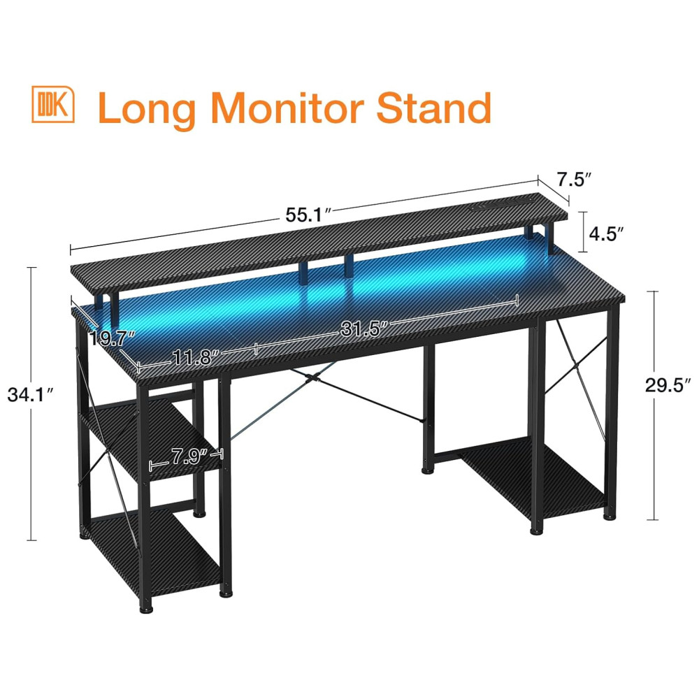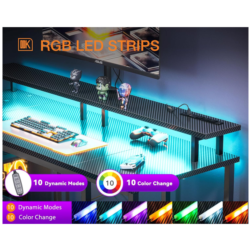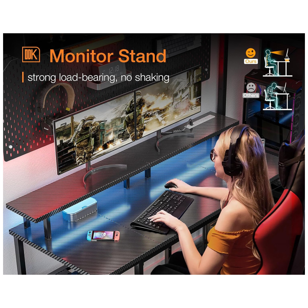 Mesa Gamer Tomadas Elétricas e Luzes LED. Suporte p Monitor e Jogos. ODK