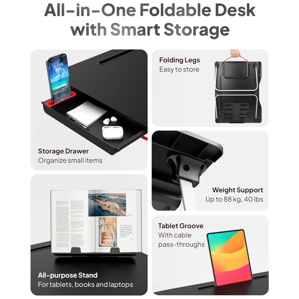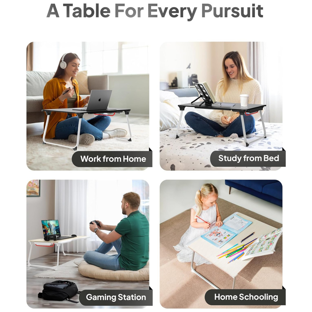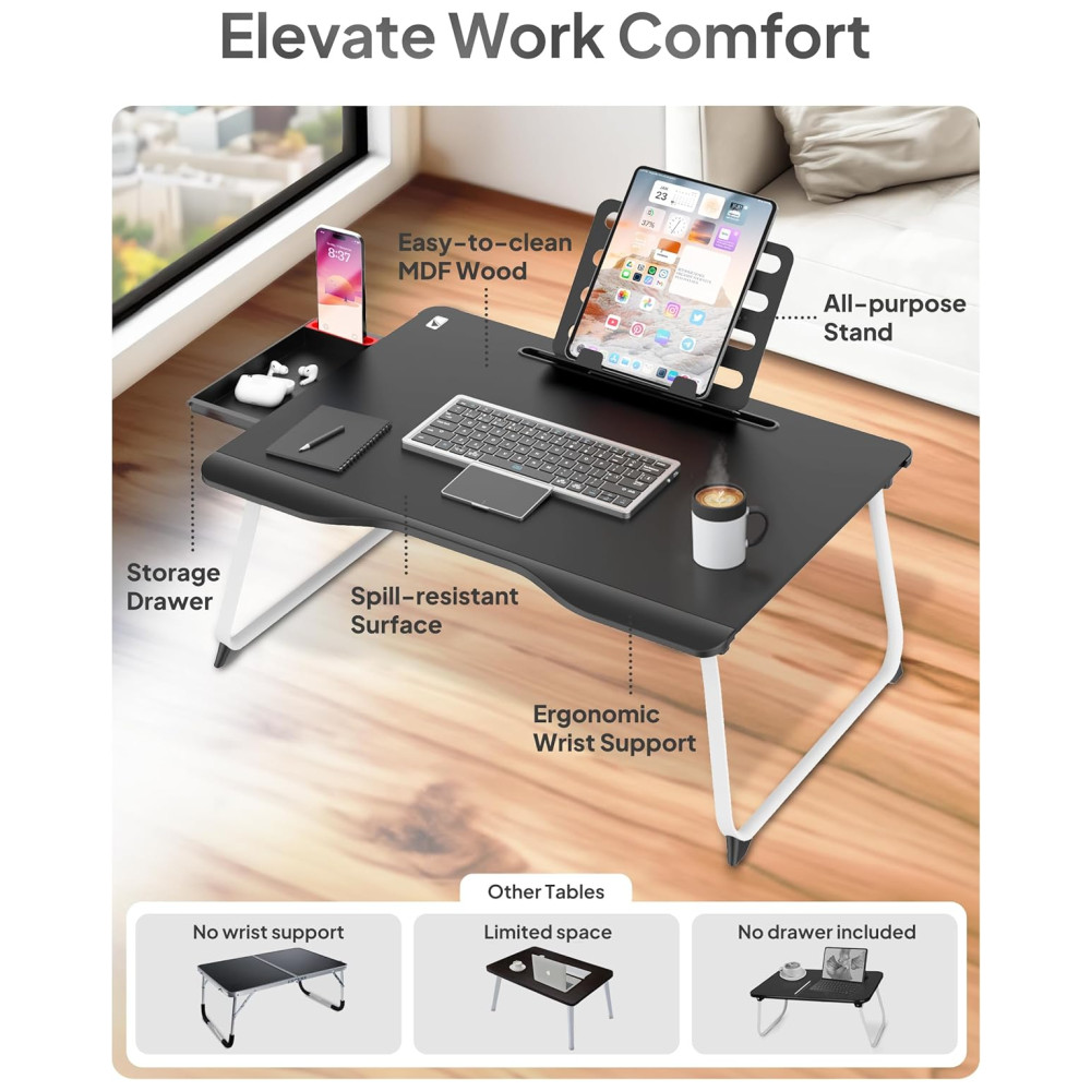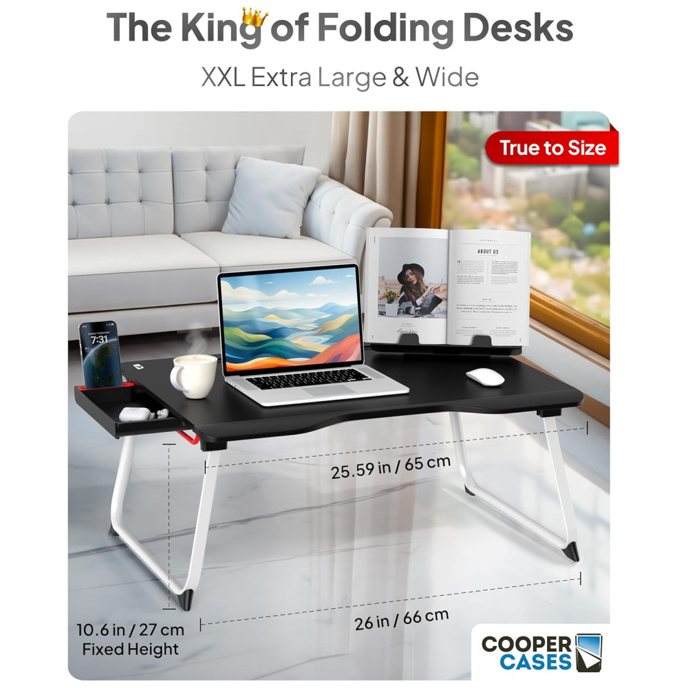 Mesa Mega XXL Extra Large Premium Build Mesa de cama dobrável mesa de colo e mesa para laptop Gaveta suporte para livros muito espaço para as pernas carvalho branco COOPER CASES CPR214OAK100