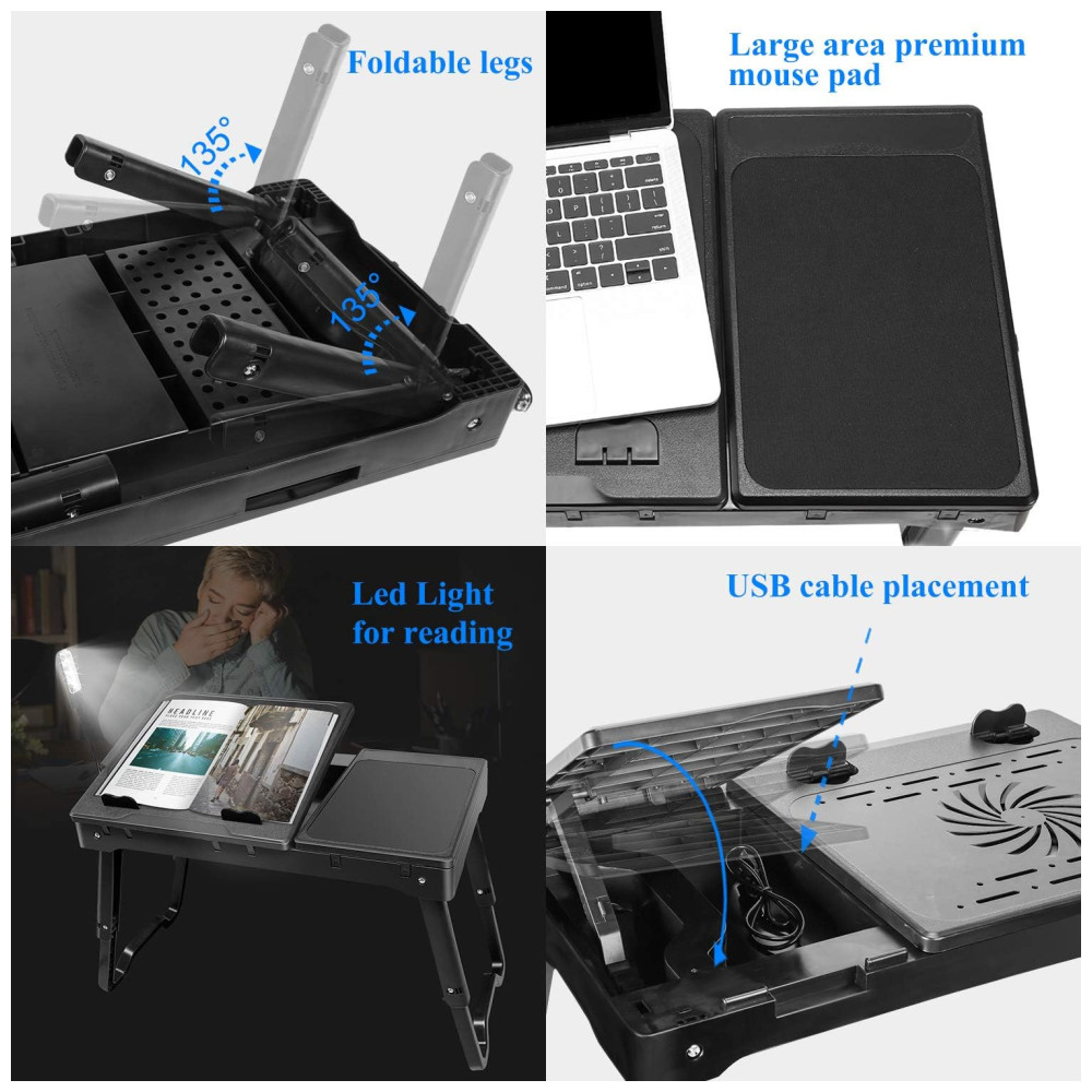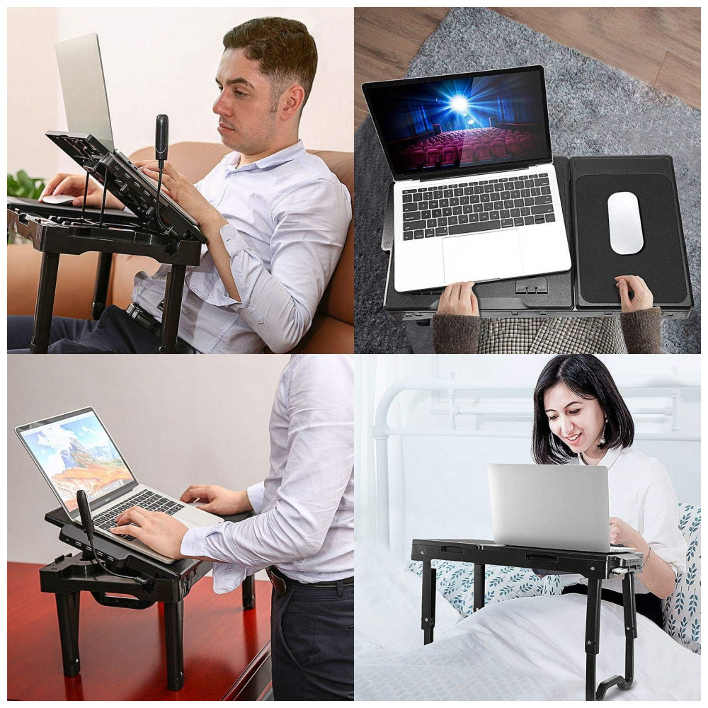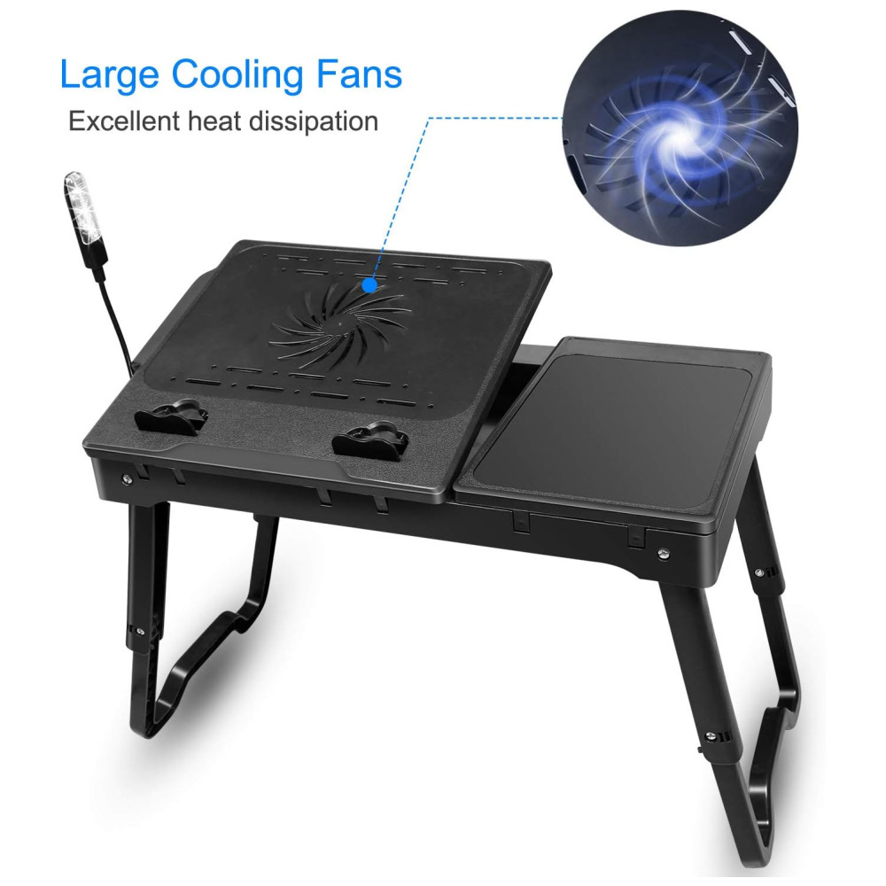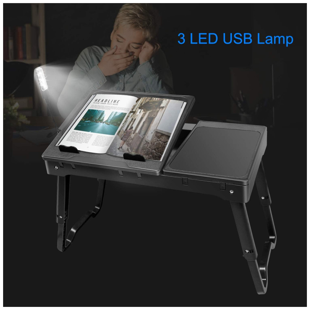 Mesa para laptop para cama com ventilador com pernas dobráveis Bandeja com luz LED 4 portas USB zenamento mouse pad TEQHOME K653 Preto