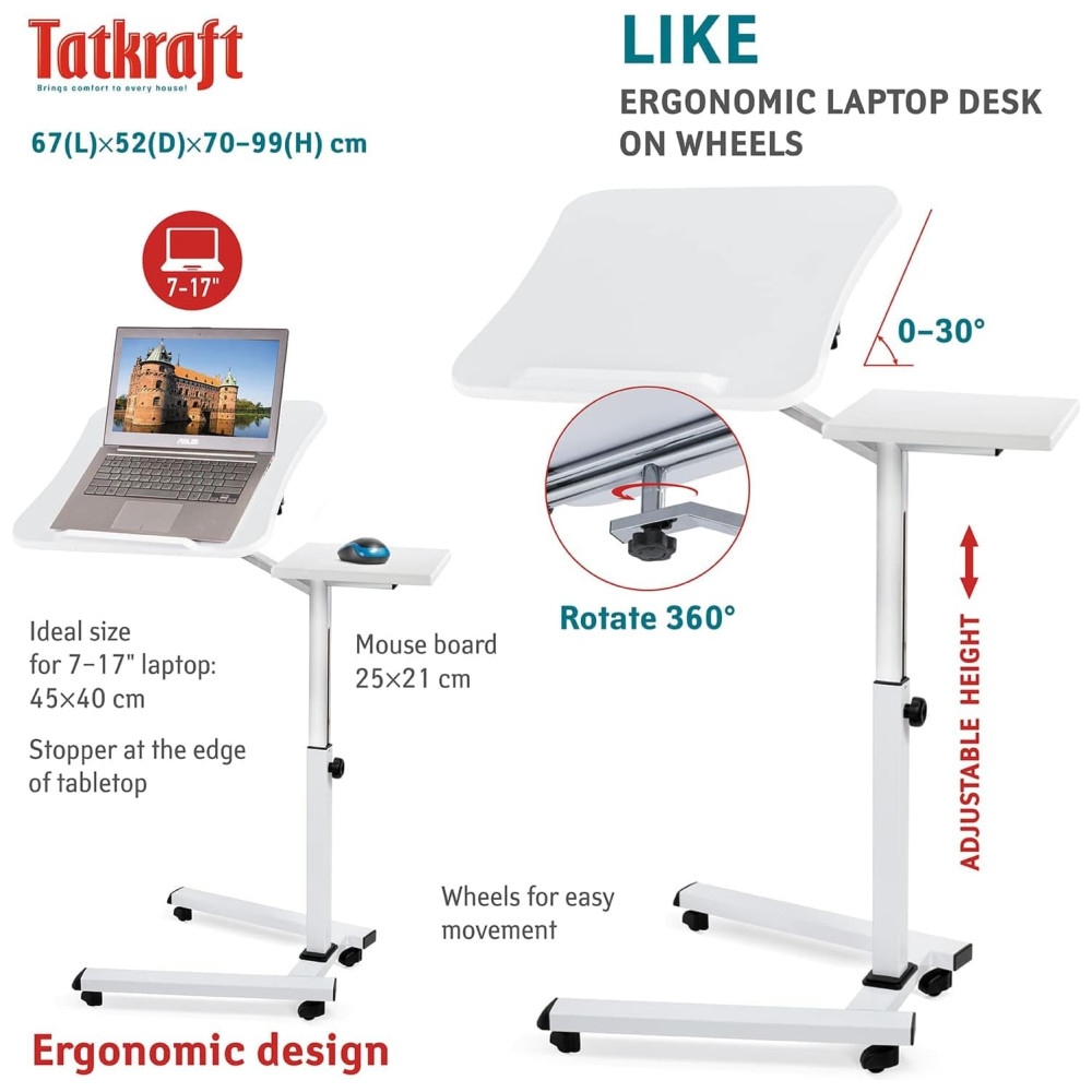 Mesa para laptop tipo com mouse pad suporte para computador com altura ajustável resistente e ergonômico branco TATKRAFT Branco