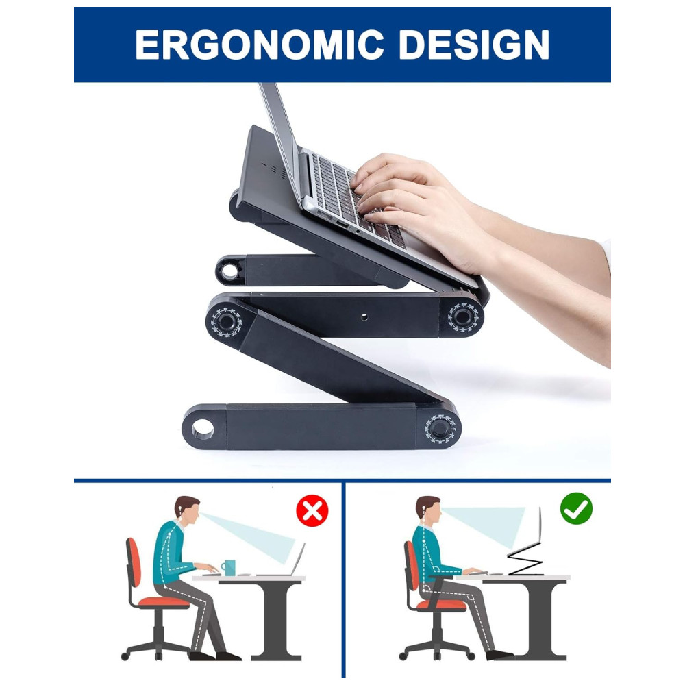 Design ergonômico projetado com suporte total para laptop e flexibilidade para sua posição, de forma que você possa usar o computador mais confortável. Reduzirá o estresse no pescoço e nos ombros, devido ao uso das dores no pescoço e nos ombros apertados pela postura.