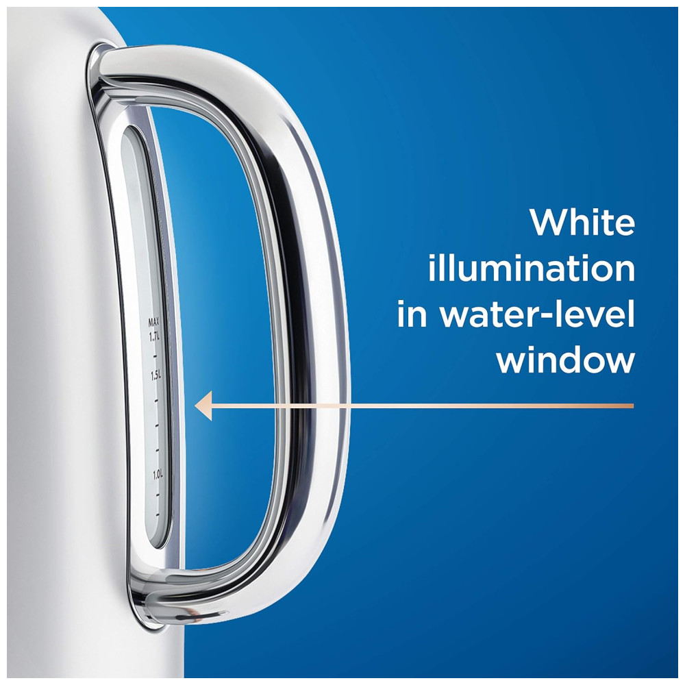 Iluminação branca em ebulição o desligamento automático desliga a chaleira quando a fervura está completa, enquanto a proteção contra fervura a seco oferece paz de espírito