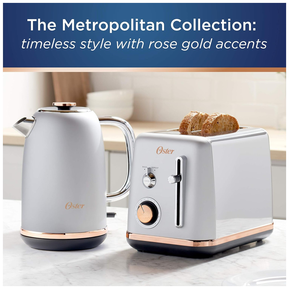 Metropolitan Chaleira Elétrica 1.7L 700W com detalhes em ouro rosa OSTER 2097736 Cinza