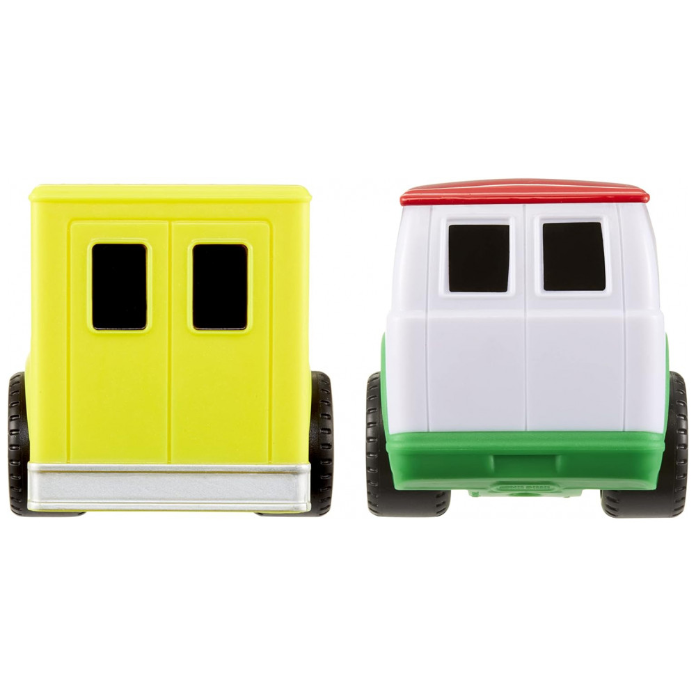 INCLUI 2 CARROS EXCLUSIVOS Este kit de 2 temas para veículos com alimentos inclui um caminhão Taco e uma van de entrega de pizza.