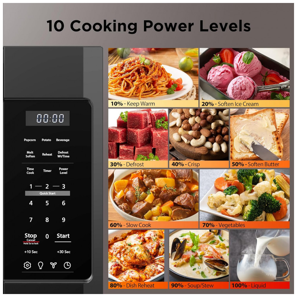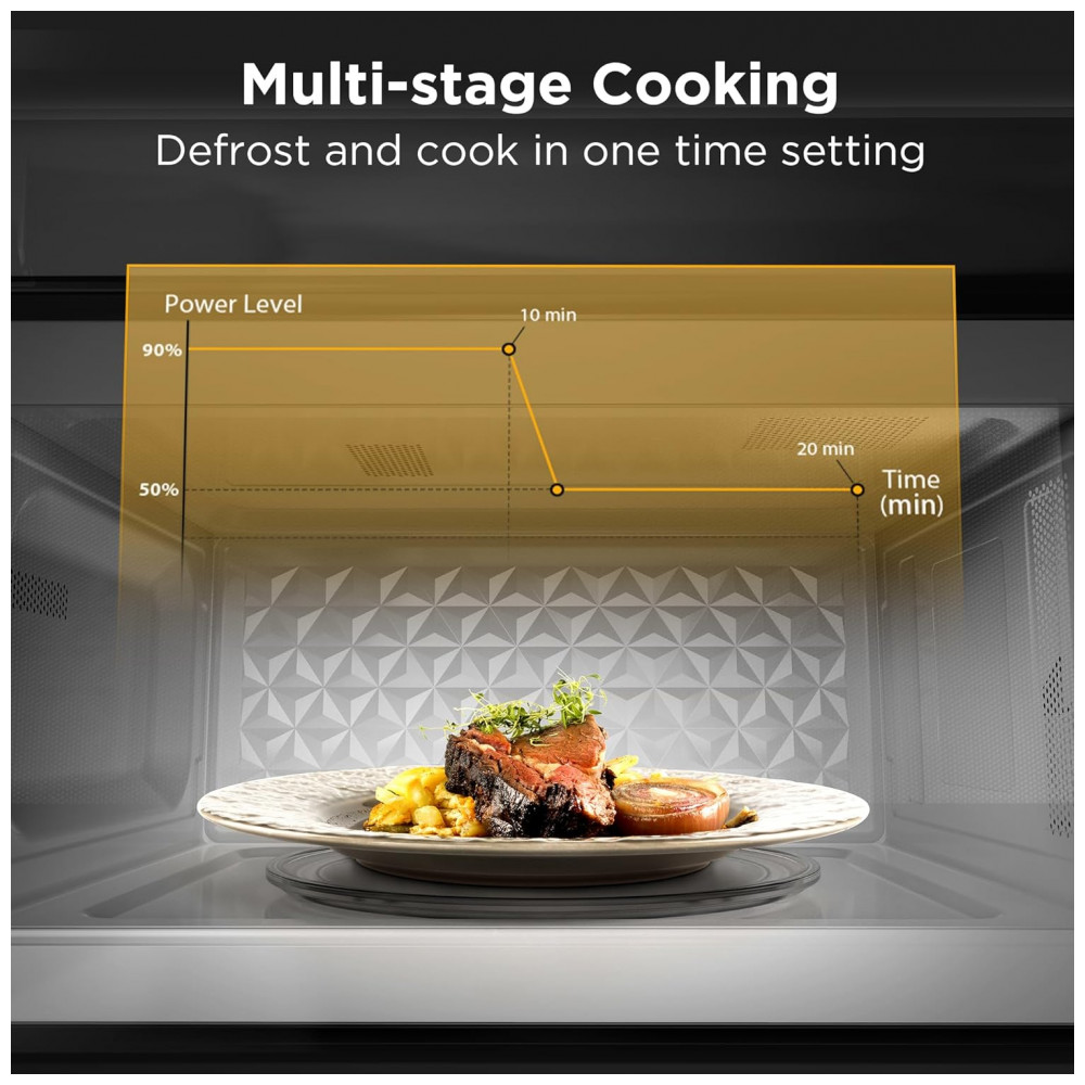 Com uma capacidade generosa de 48,14 litros, este micro-ondas vai se tornar seu sous chef favorito em qualquer aventura culinária. Com 10 níveis de potência e 6 menus rápidos, incluindo Pipoca, Bebida, Derreter/Amolecer, Reaquecer e Descongelar. Cozinhe rapidamente selecionando os níveis de potência em minutos. Economize tempo com o cozimento multietapas. Além disso, conta com um potente ventilador de 300 CFM com 2 velocidades e luz integrada para iluminação enquanto cozinha.