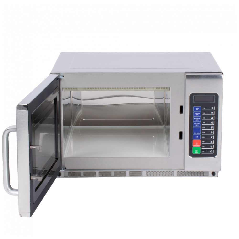 Este modelo conta com 10 teclas de memória programáveis, permitindo até 100 configurações diferentes para armazenar suas receitas favoritas. Isso possibilita que até mesmo funcionários com pouca experiência cozinhem alimentos variados com precisão e facilidade, pressionando apenas um botão. Os cinco níveis de potência embutidos — alto, médio-alto, médio, descongelar e manter aquecido — aliados à tecnologia de cozimento em múltiplas etapas, oferecem versatilidade para diversos tipos de alimentos e métodos de preparo.