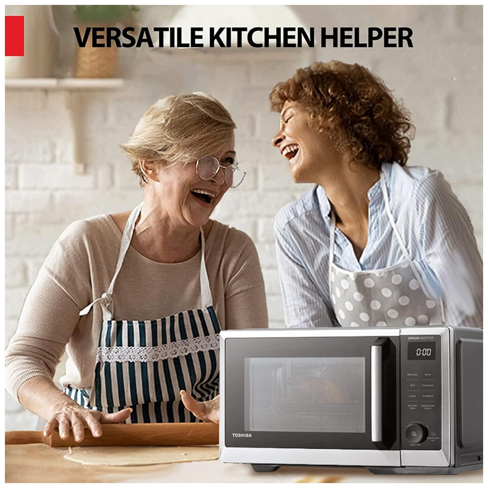 Versatilidade máxima 6 em 1Toshiba Master 6 em 1 Inverter Microondas com 10 níveis de potência pode ser o seu melhor ajudante de cozinha. A versatilidade como micro ondas, fritadeira, forno de convecção, grelha, descongelador, Speedy Combi, torna o o seu melhor economizador de espaço na bancada