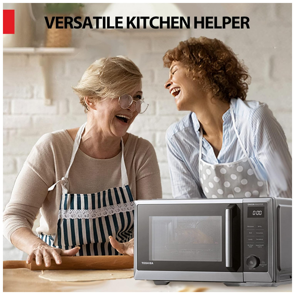 Versatilidade máxima 6 em 1Toshiba Master 6 em 1 Inverter Microondas com 10 níveis de potência pode ser o seu melhor ajudante de cozinha. A versatilidade como micro ondas, fritadeira, forno de convecção, grelha, descongelador, Speedy Combi, torna o o seu melhor economizador de espaço na bancada.