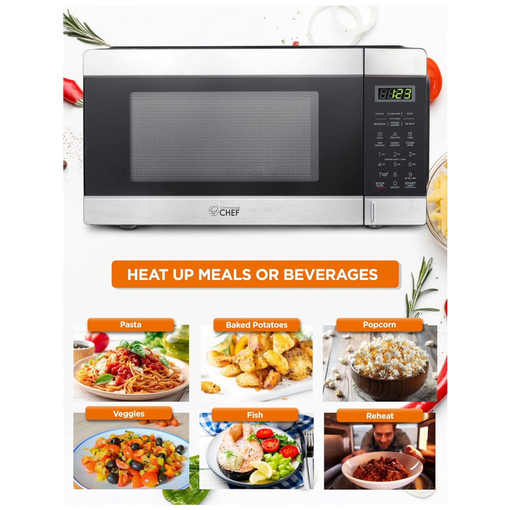 Poderoso e eficiente, o micro-ondas Commercial CHEF de 1000 watts e 14,5 kg é a solução para refeições deliciosas em questão de minutos. Prepare pipoca, massas e outros pratos favoritos com facilidade! Com 10 níveis de potência, incluindo 6 menus com Descongelamento por Peso e Velocidade, este compacto micro-ondas de 53 cm x 39,6 cm x 29,9 cm oferece um controle preciso. Aqueça alimentos de 30 segundos a 99 minutos com controles digitais fáceis de usar e timer de cozinha preciso. Com 1000 watts de potência, prato giratório e capacidade, este micro-ondas em aço inoxidável se destaca. Perfeito para a correria do dia a dia, permitindo aquecer refeições, lanches e bebidas rapidamente. Desfrute de deliciosas refeições sem perder tempo!