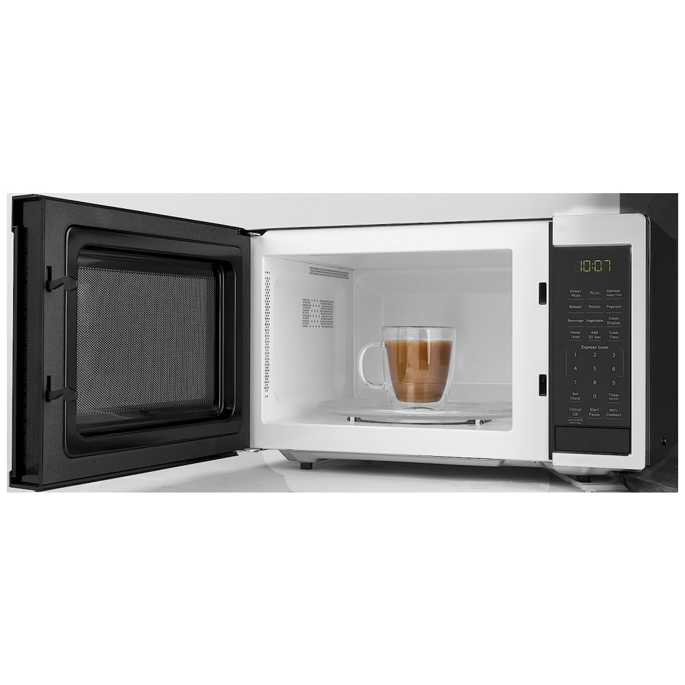 COZINHAR MAIS INTELIGENTE COM WIFI ALIMENTADO POR SMART HQ A culinária habilitada por voz permite ligar e desligar o micro ondas, adicionar tempo ou alterar o nível de energia via Alexa ou Google Assistant A tecnologia Scan To Cook economiza tempo e otimiza a preparação de alimentos congelados.