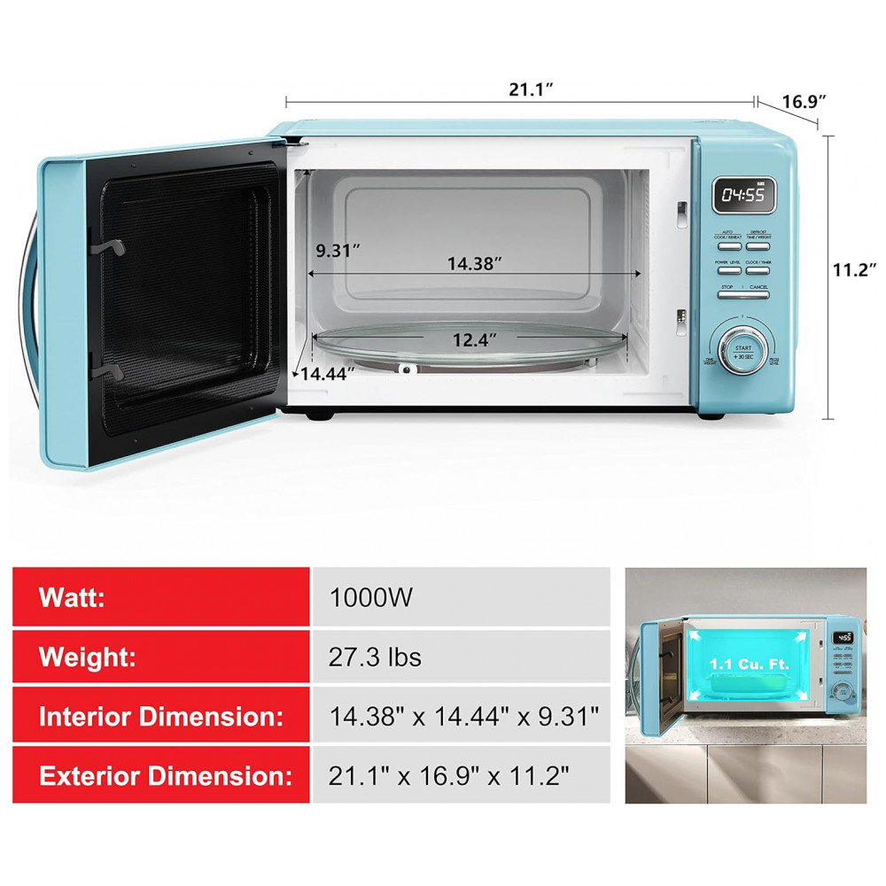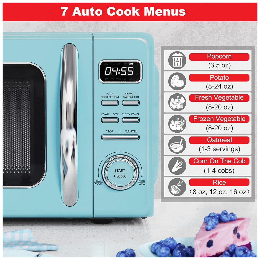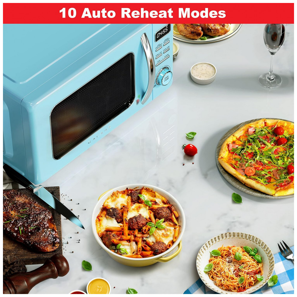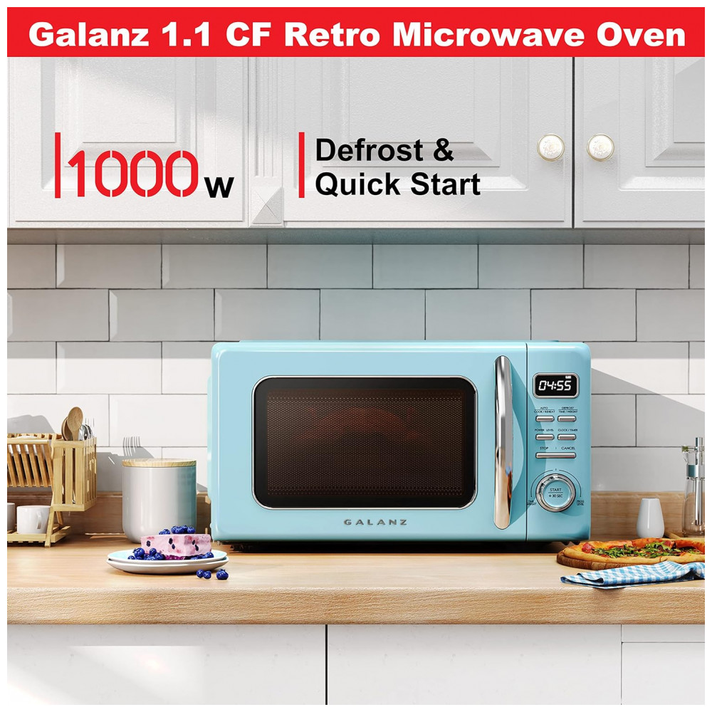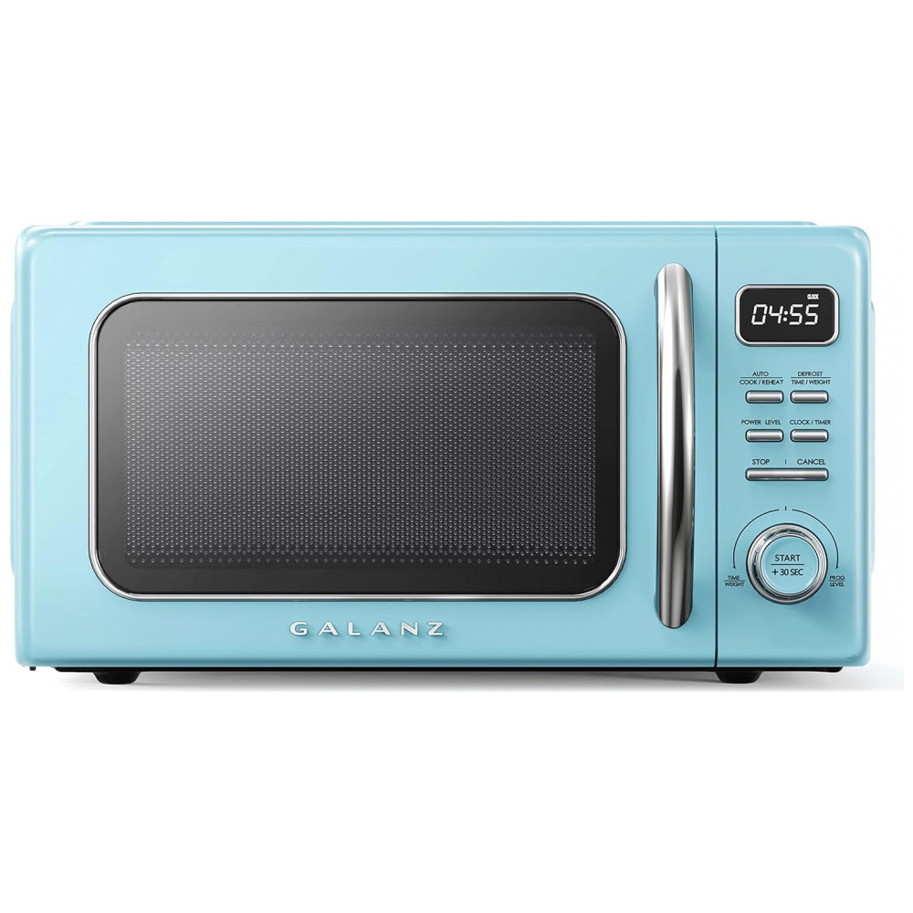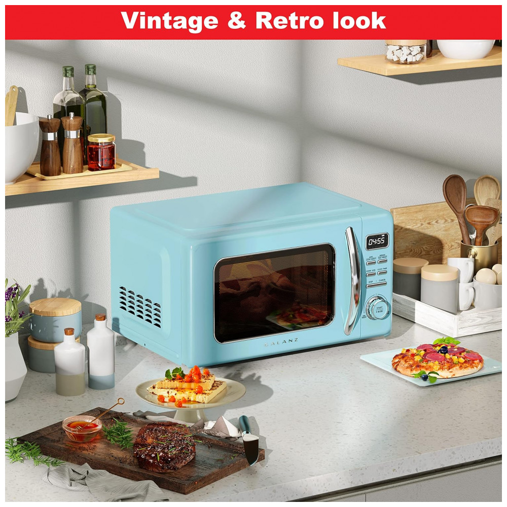 Micro Ondas de Bancada em Aço Inoxidável 31L com 10 Programas 110V 1000W Galanz GLCMKZ11BER10 Retro Azul