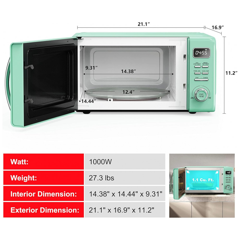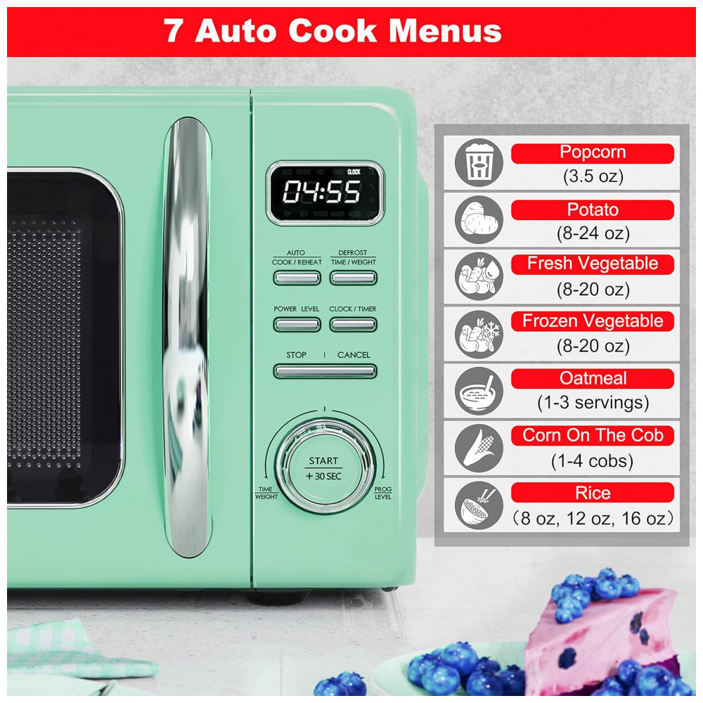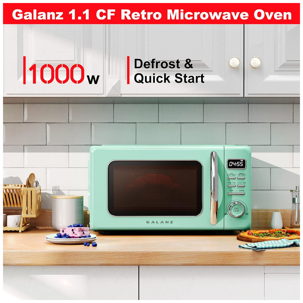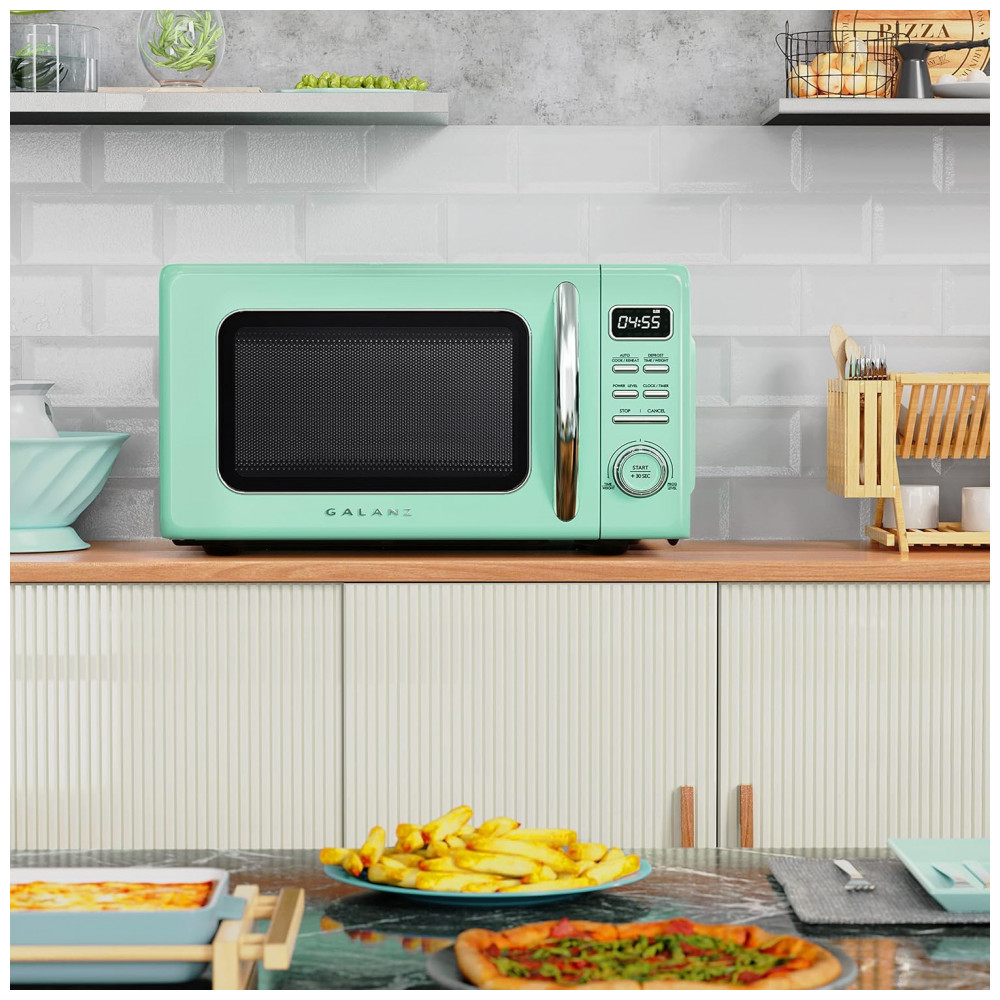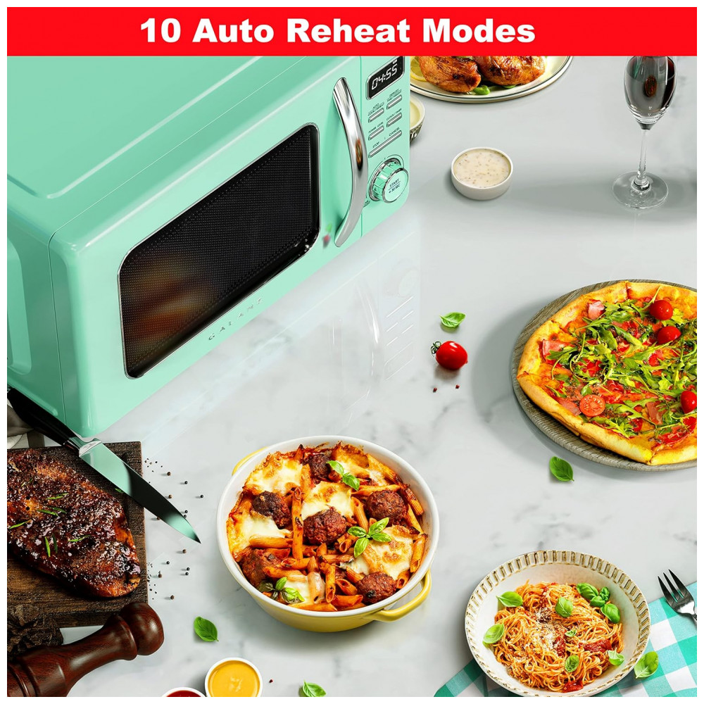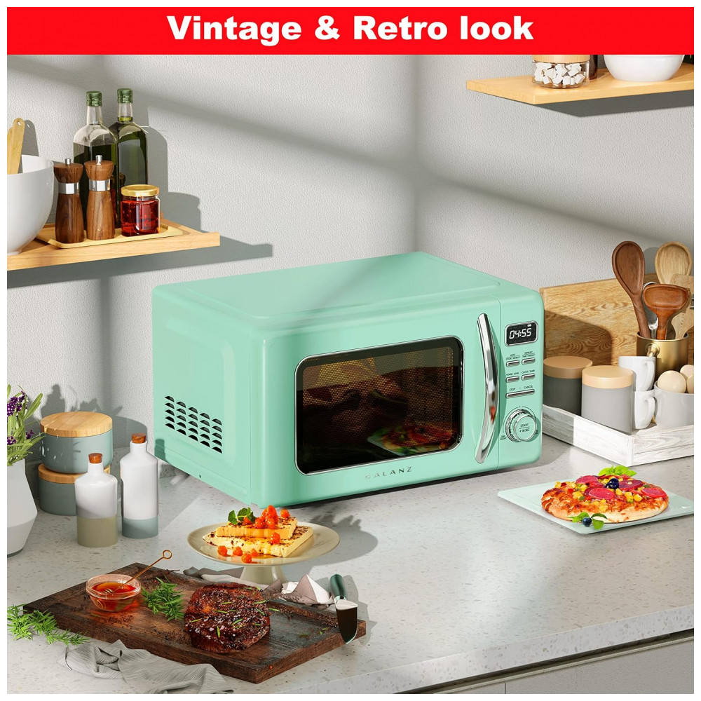 Micro Ondas de Bancada em Aço Inoxidável 31L com 10 Programas 110V 1000W Galanz GLCMKZ11GNR10 Retro Verde