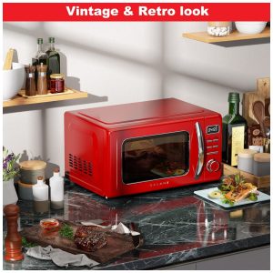 Micro Ondas de Bancada em Aço Inoxidável 31L com 10 Programas 110V 1000W Galanz GLCMKZ11RDR10 Retro Vermelho