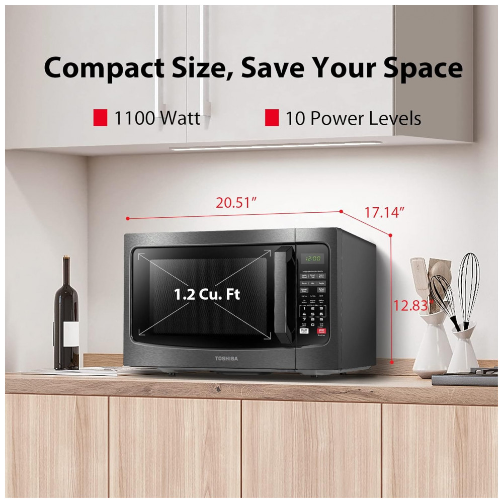Micro Ondas de Bancada em Aço Inoxidável 33L com 12 Programas 110V 1100W TOSHIBA EM131A5CBS Preto
