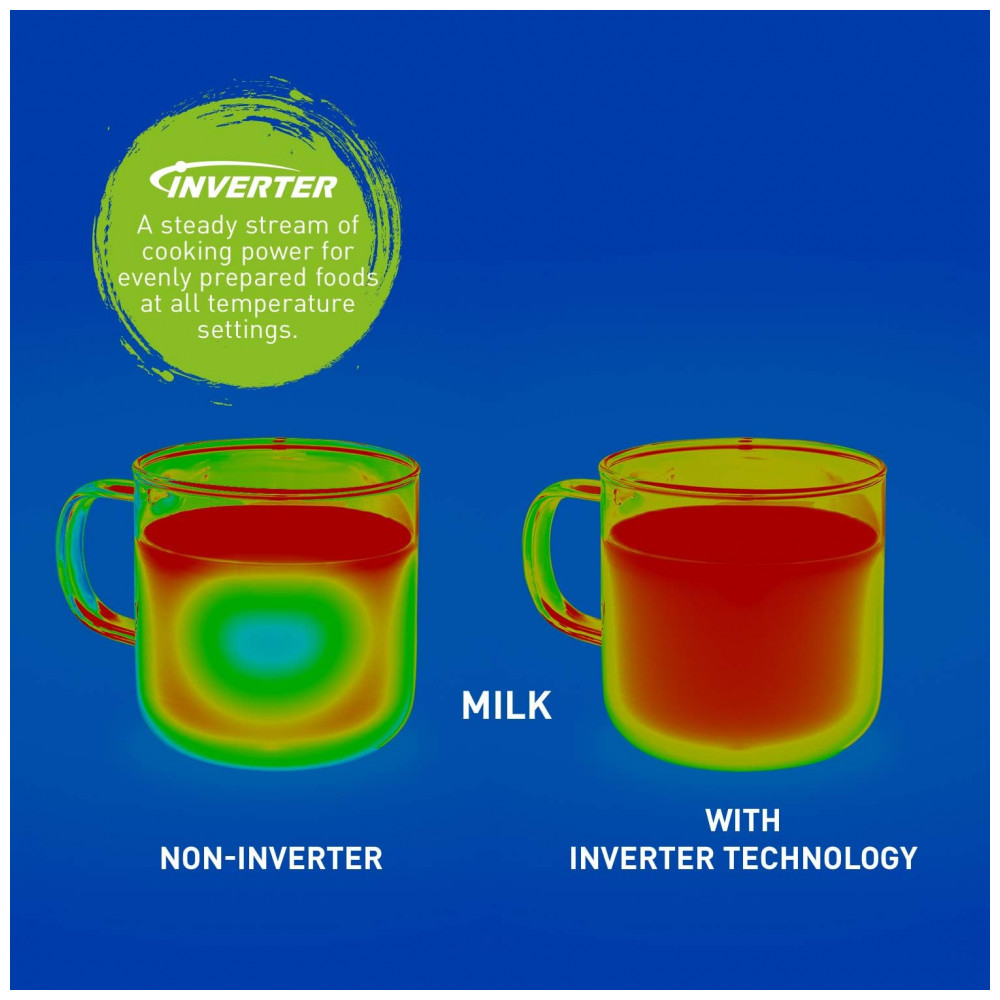 Tecnologia Inverter com Turbo Defrost A tecnologia Inverter patenteada gera um fluxo contínuo de energia e oferece comida consistente e uniformemente preparada sem cozinhar demais Advanced Inverter Turbo Defrost acelera o tempo de descongelamento.