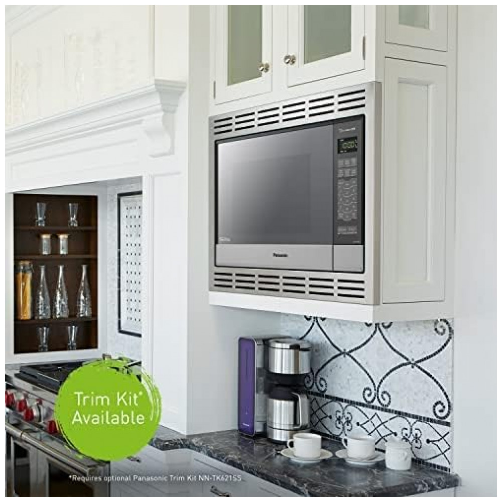 Microondas Panasonic Este micro ondas embutido de 1200 Watts de alta potência e 33L cúbicos de capacidade em aço inoxidável oferece um fluxo contínuo de potência de cozimento para cozimento uniforme e sabor delicioso.