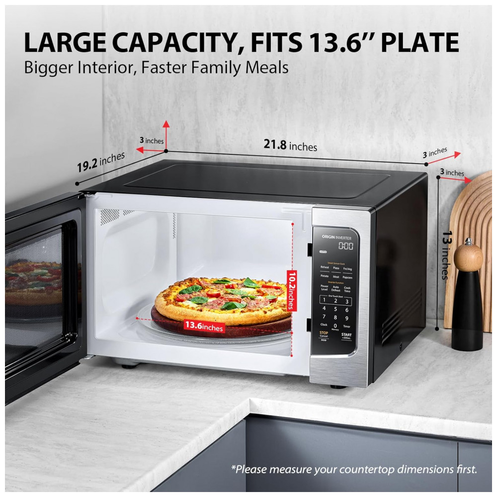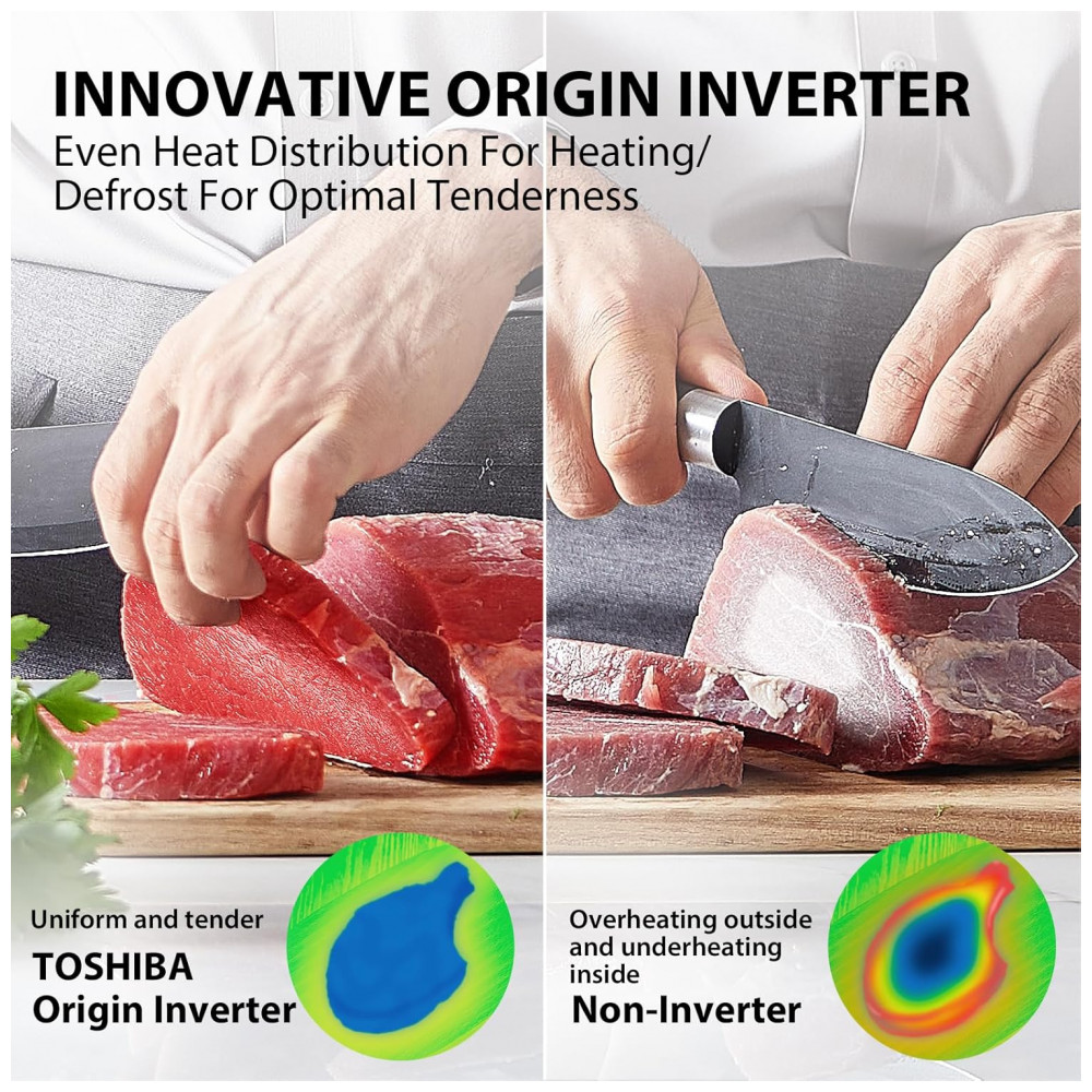 Origin Inverter TechnologyA tecnologia Inverter fornece aquecimento e descongelamento uniformes, permite um cozimento mais rápido e uma experiência de usuário mais satisfatória também o microondas inversor é mais leve em comparação com o mesmo tamanho de microondas.