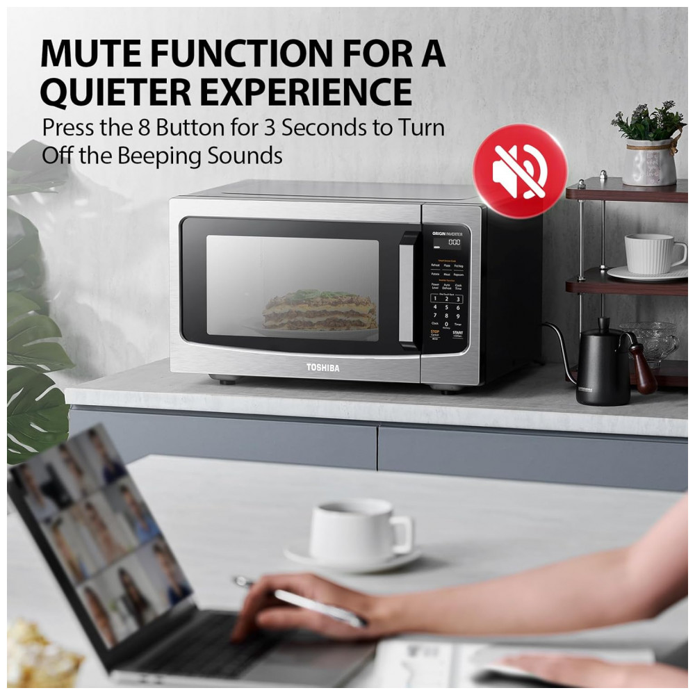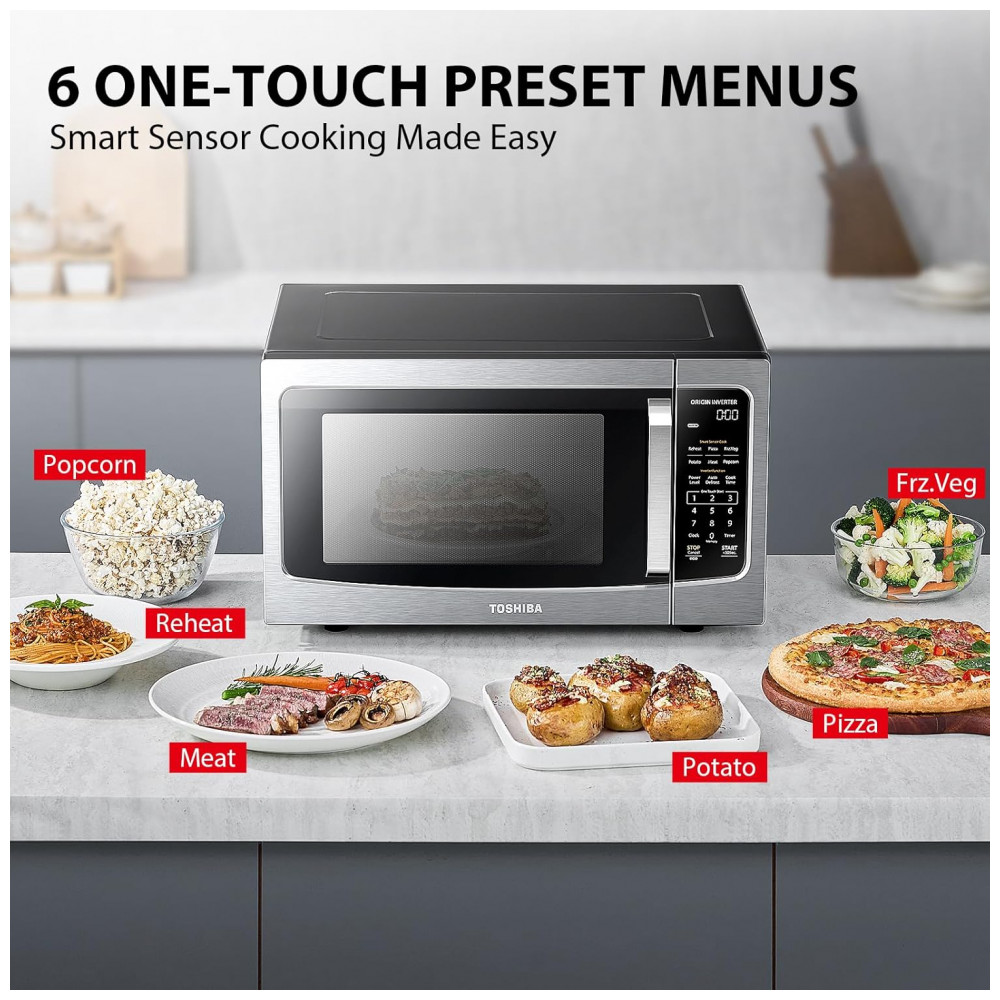 Micro Ondas de Bancada em Aço Inoxidável 45L com 6 Programas e Sensor Inteligente 110V 1350W TOSHIBA EM45PIT Prata