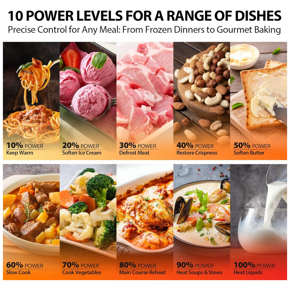 6 menus automáticos do sensor inteligenteMenus de sensor pré programados para aquecimento ideal de alimentos populares como pizza, batata, vegetais e muito mais. O sensor inteligente ajustará automaticamente a potência e manterá a textura dos alimentos.