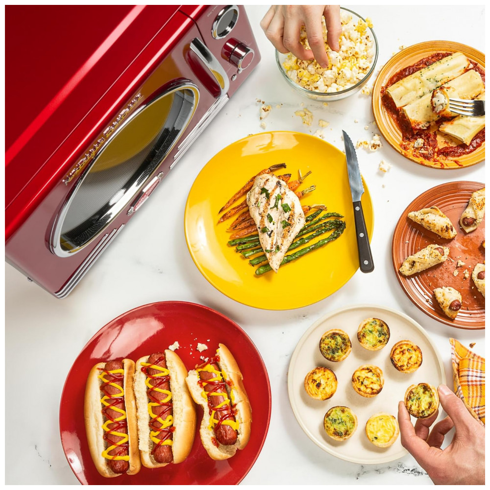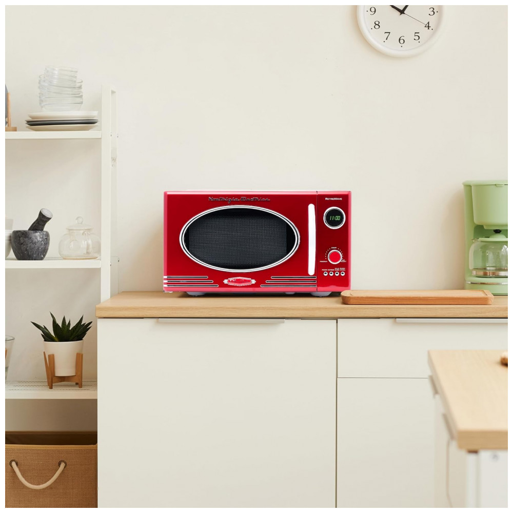 Micro Ondas de Bancada Retrô 25L com 12 Programas e Relógio Digital 110V 800W Nostalgia RMO4RR Vermelho