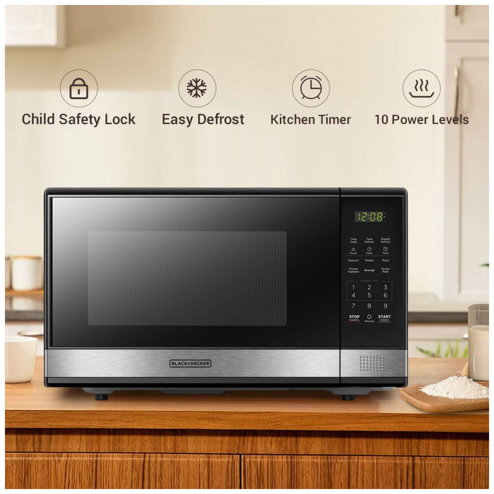 Micro-ondas Digital BLACK+DECKER EM031MB11 com Prato Giratório Porta com Botão de Pressão Trava de Segurança para Crianças 1000W 31 litros