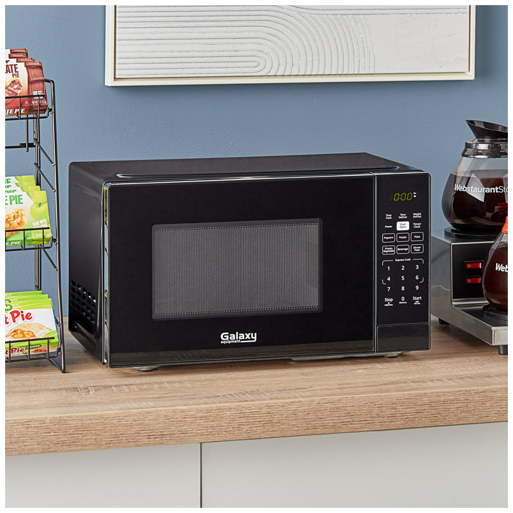 O micro-ondas Galaxy MW-900-D0A da série Office é um equipamento de uso leve para reaquecimento de bebidas, sopas e sanduíches em salas de descanso, escritórios, snack bars ou kitchenettes de hotel. Com potência de 900 W, pratos giratórios de vidro e janela de observação na porta, oferece visibilidade completa do conteúdo durante o uso. Projetado para menos de 50 usos diários fora de cozinhas comerciais, possui pés elevados antiderrapantes para estabilidade em bancadas.
