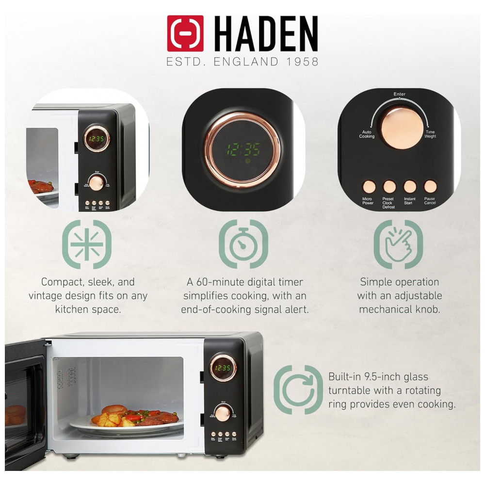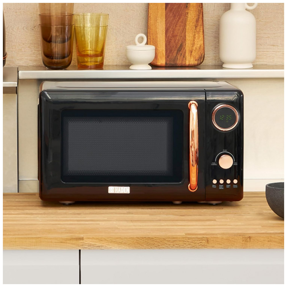 Micro-ondas HADEN 700W 20L Controle Digital Descongelamento Automático e Prato Giratório Preto Cobre